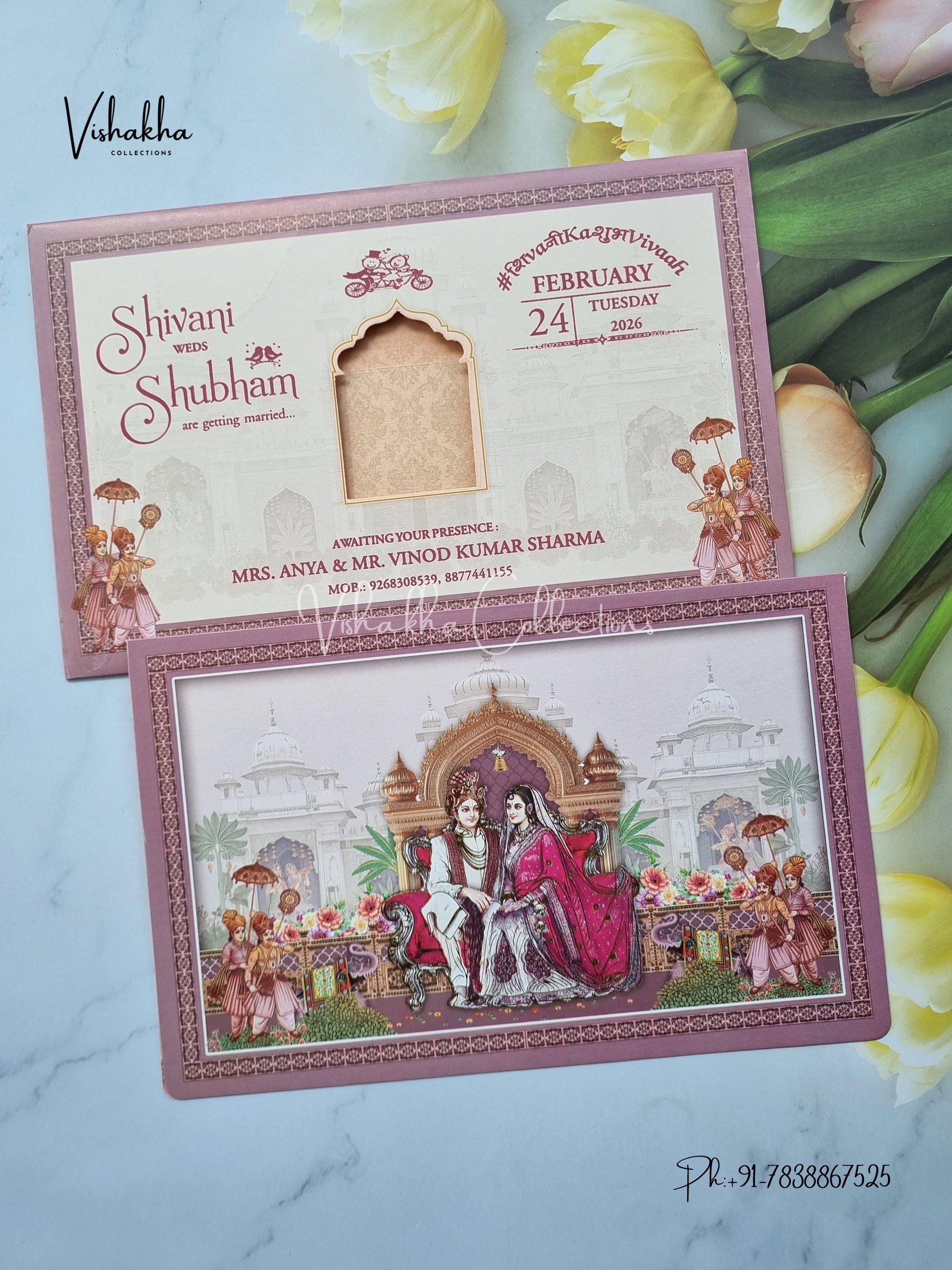 Vishakha Collections presents you beautiful luxury wedding invitation cards with all latest designs and the latest variety. Its just not a wedding invitation card but a beautiful feeling of love and relationship it carries for you. Beautifully printed and packed with a bundle of love. if you like it, dont think again, just go for it.If you are worrying about the quality of the product, send your doubts to us. We are here to help you. If you want in wholesale or bulk, dont forget to contact us.