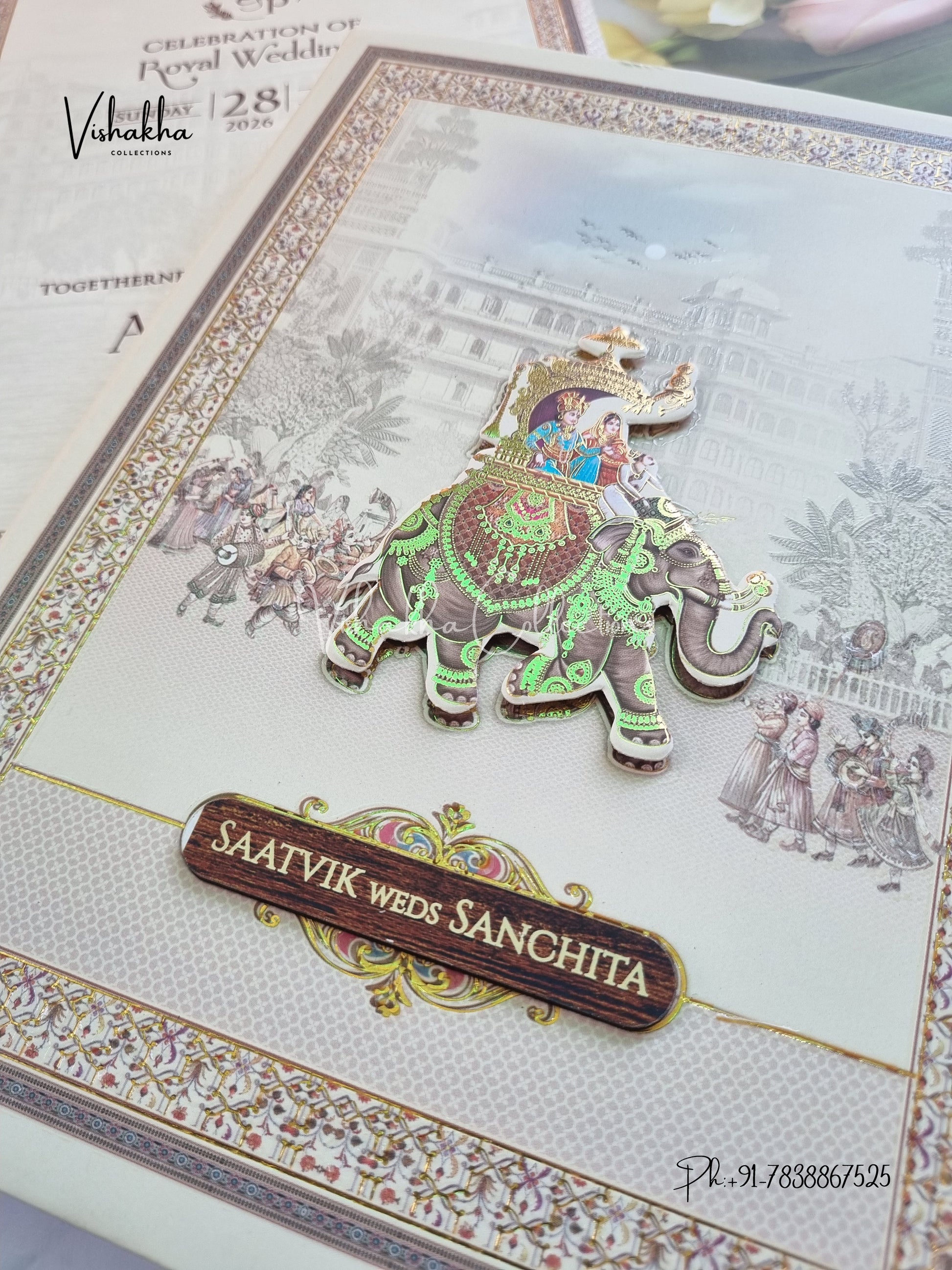 Barat Hathi Dulah Dulhan Hindu Sikh Padded invitation Cards CR-5091