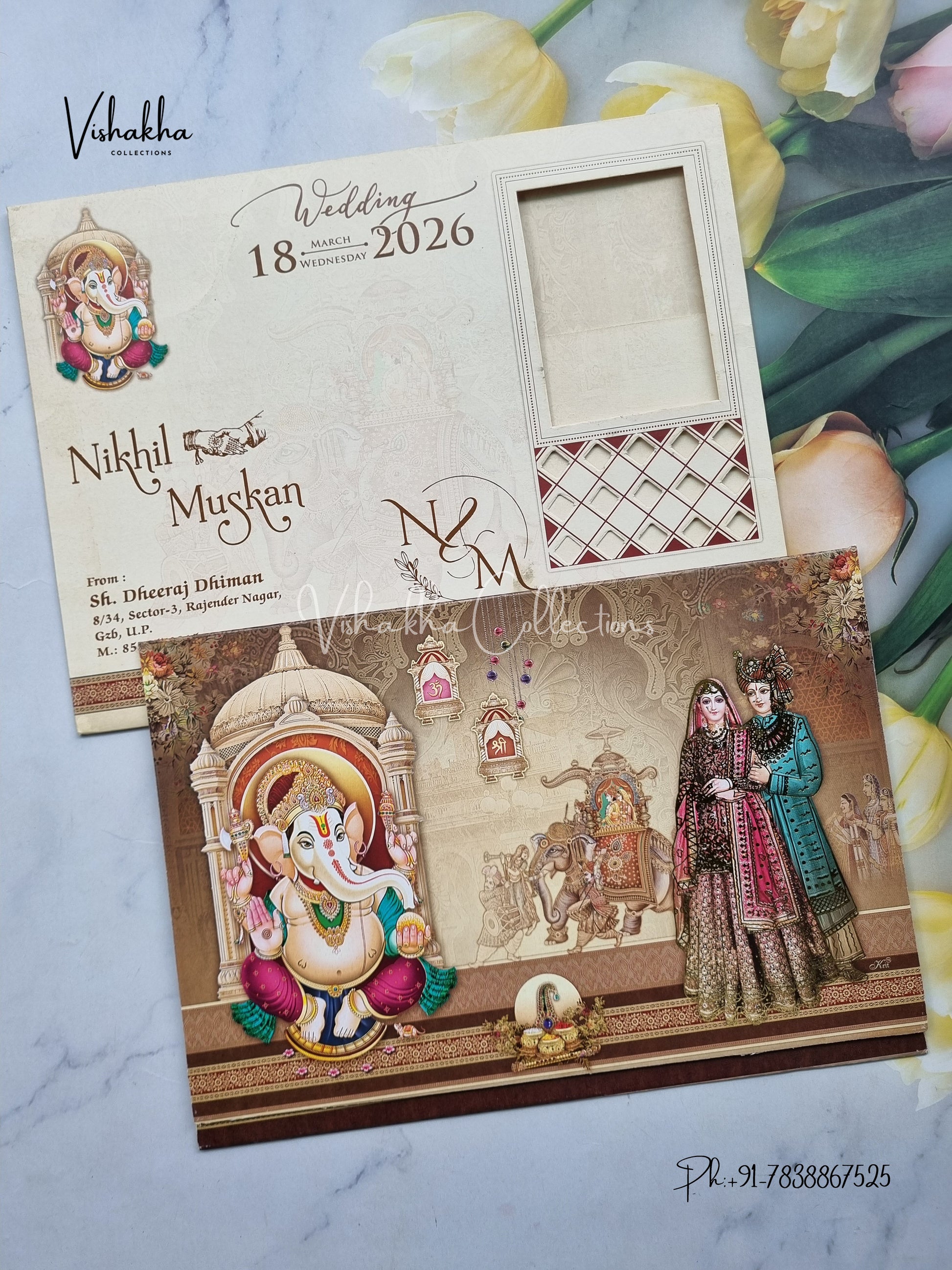 Barat Hathi Ganesh Ji Dulah Dulhan Hindu Brown Colored invitation Cards NA-1125-71