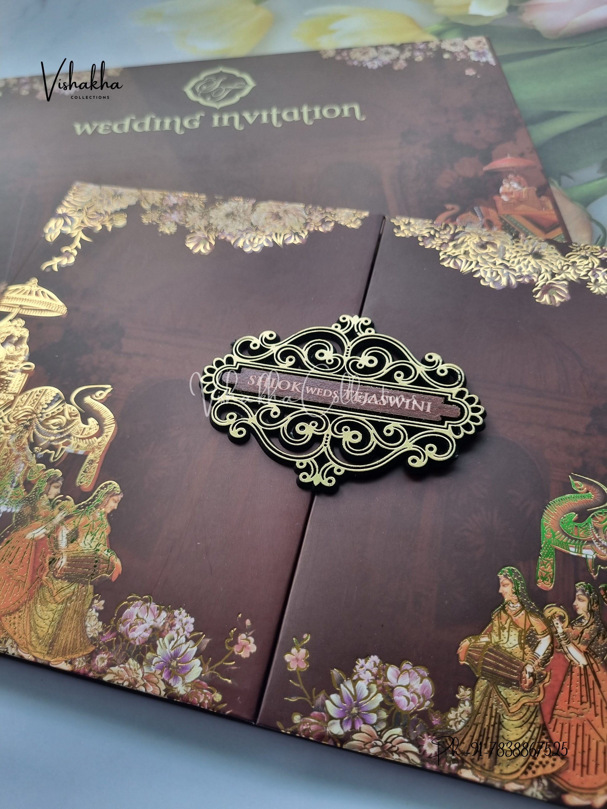 Vishakha Collections presents you beautiful luxury wedding invitation cards with all latest designs and the latest variety. Its just not a wedding invitation card but a beautiful feeling of love and relationship it carries for you. Beautifully printed and packed with a bundle of love. if you like it, dont think again, just go for it.If you are worrying about the quality of the product, send your doubts to us. We are here to help you. If you want in wholesale or bulk, dont forget to contact us.