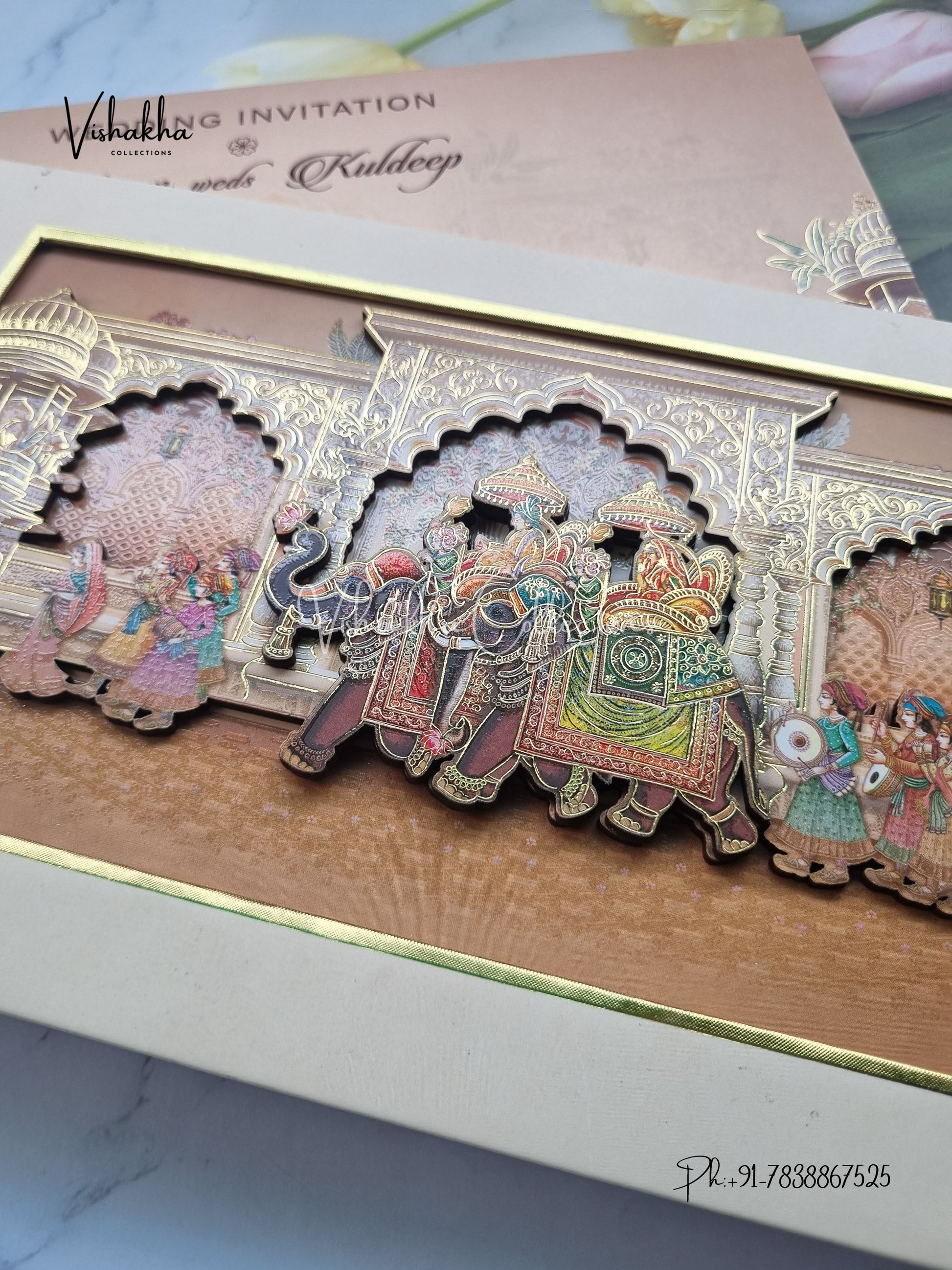 Vishakha Collections presents you beautiful luxury wedding invitation cards with all latest designs and the latest variety. Its just not a wedding invitation card but a beautiful feeling of love and relationship it carries for you. Beautifully printed and packed with a bundle of love. if you like it, dont think again, just go for it.If you are worrying about the quality of the product, send your doubts to us. We are here to help you. If you want in wholesale or bulk, dont forget to contact us.