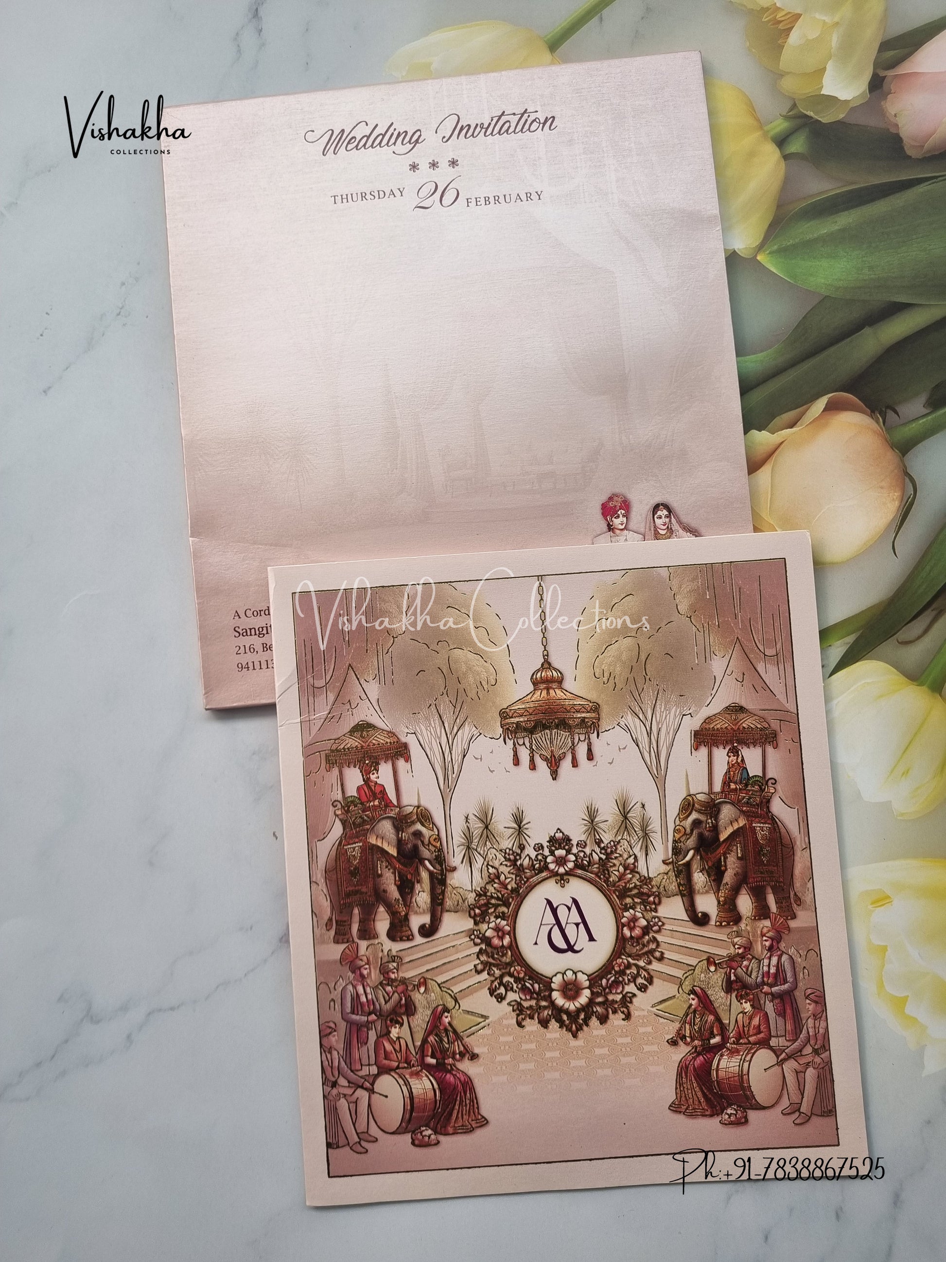 Barat Semi Box Hathi Hindu invitation Cards EJ-5303