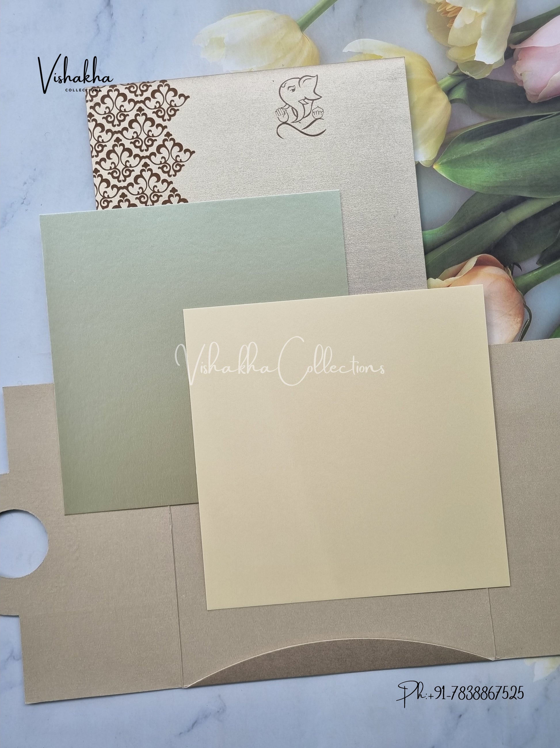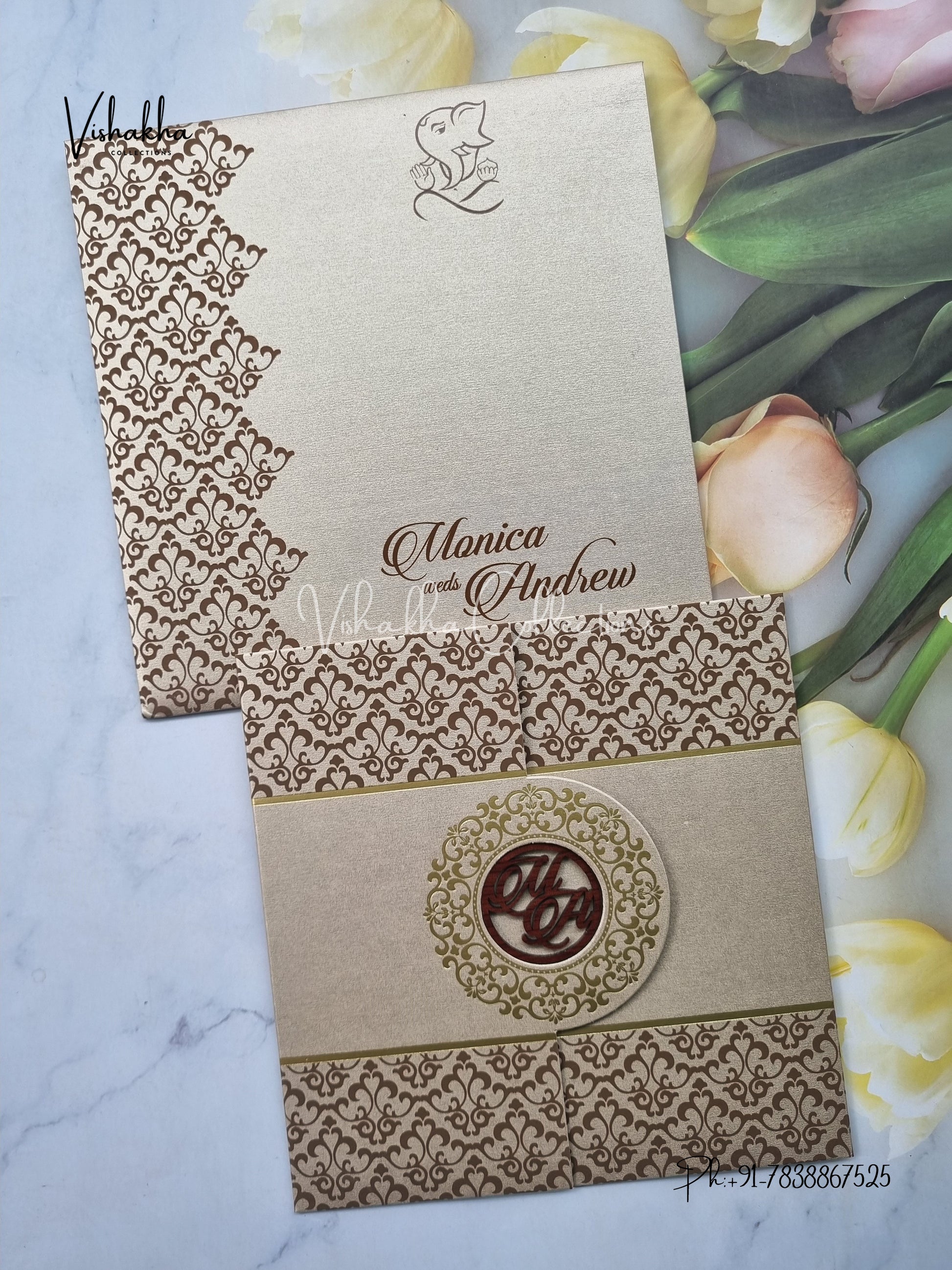 Vishakha Collections presents you beautiful luxury wedding invitation cards with all latest designs and the latest variety. Its just not a wedding invitation card but a beautiful feeling of love and relationship it carries for you. Beautifully printed and packed with a bundle of love. if you like it, dont think again, just go for it.If you are worrying about the quality of the product, send your doubts to us. We are here to help you. If you want in wholesale or bulk, dont forget to contact us.