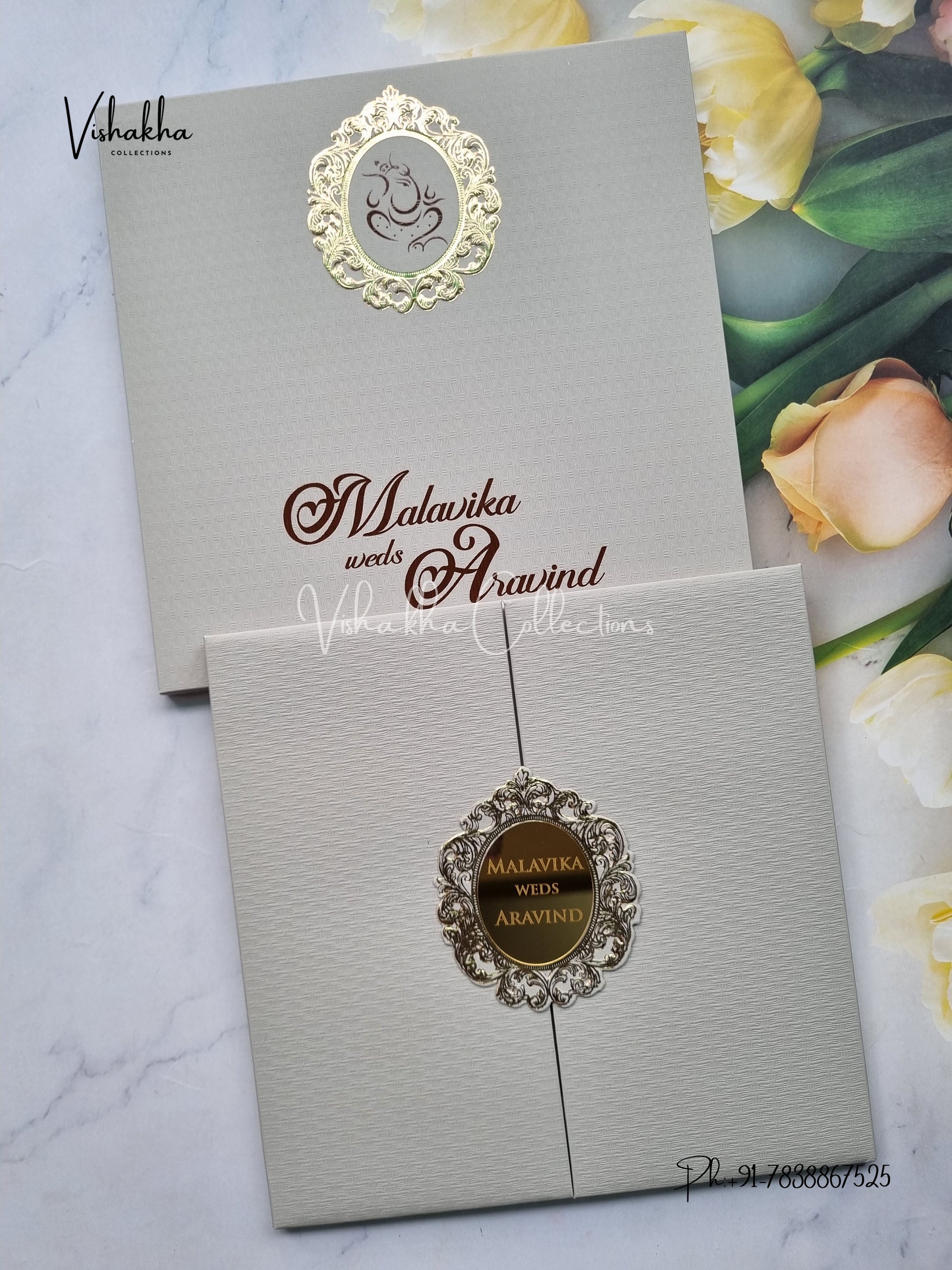 Vishakha Collections presents you beautiful luxury wedding invitation cards with all latest designs and the latest variety. Its just not a wedding invitation card but a beautiful feeling of love and relationship it carries for you. Beautifully printed and packed with a bundle of love. if you like it, dont think again, just go for it.If you are worrying about the quality of the product, send your doubts to us. We are here to help you. If you want in wholesale or bulk, dont forget to contact us.