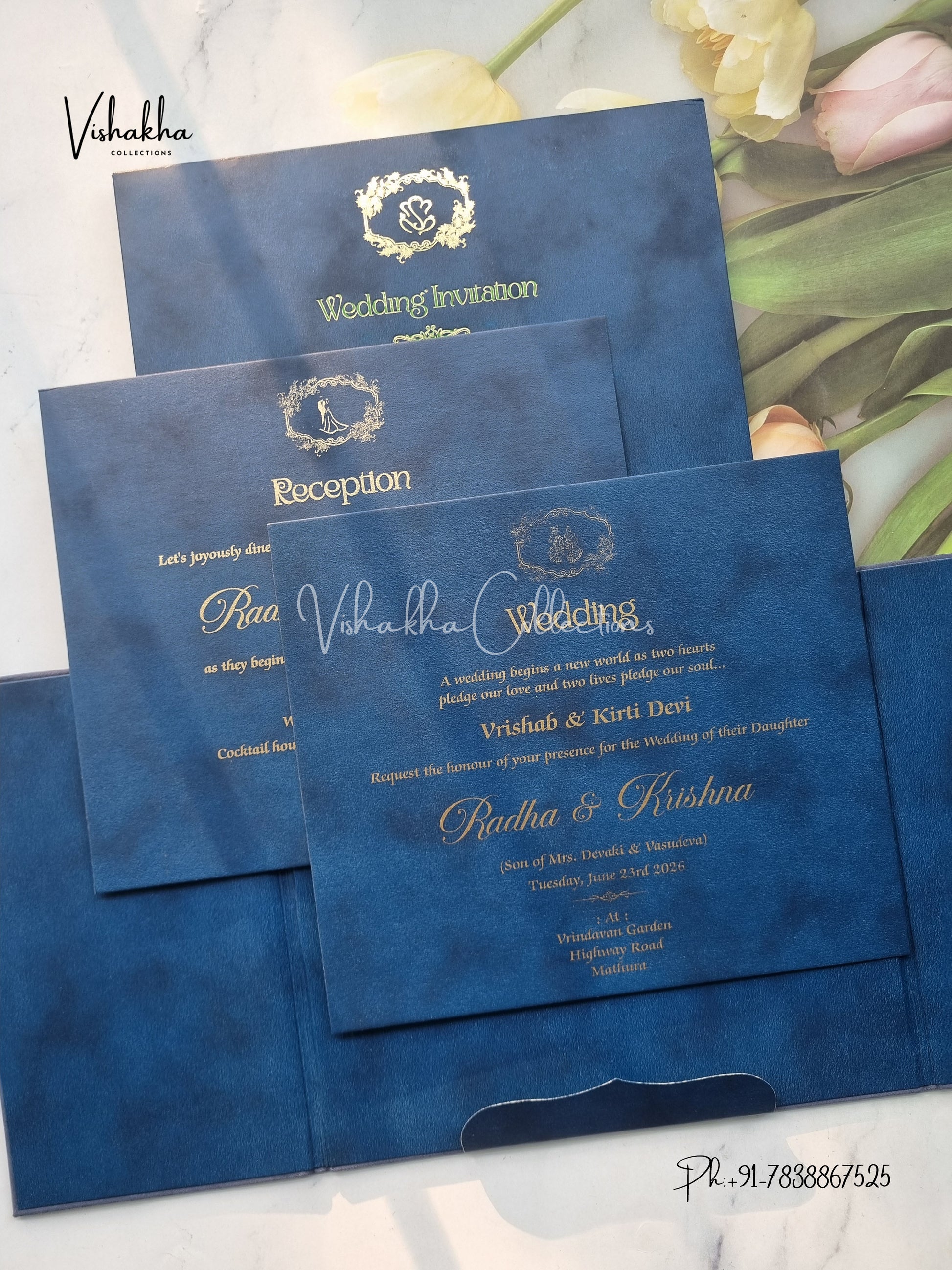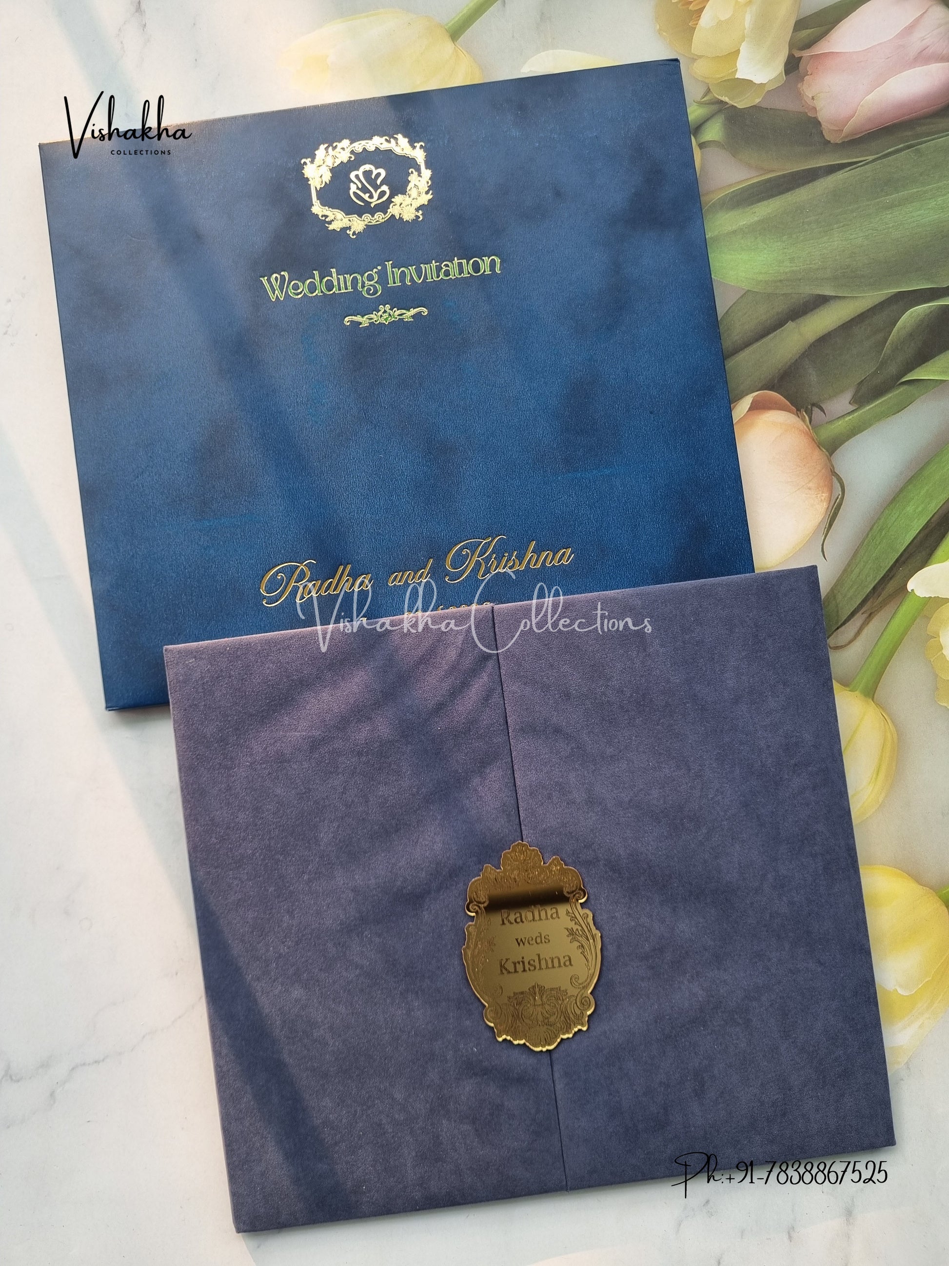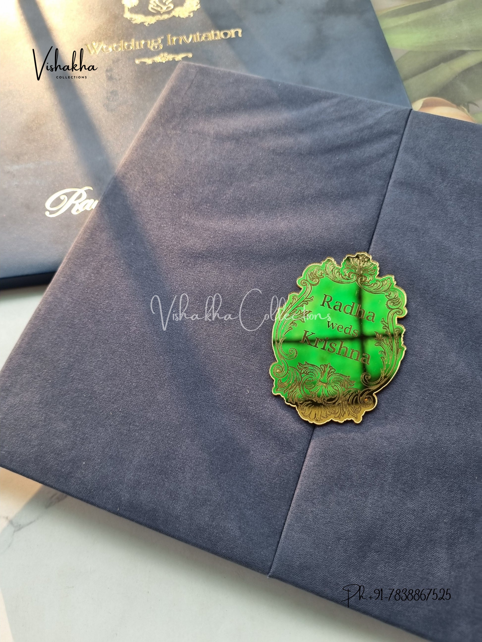 Vishakha Collections presents you beautiful luxury wedding invitation cards with all latest designs and the latest variety. Its just not a wedding invitation card but a beautiful feeling of love and relationship it carries for you. Beautifully printed and packed with a bundle of love. if you like it, dont think again, just go for it.If you are worrying about the quality of the product, send your doubts to us. We are here to help you. If you want in wholesale or bulk, dont forget to contact us.