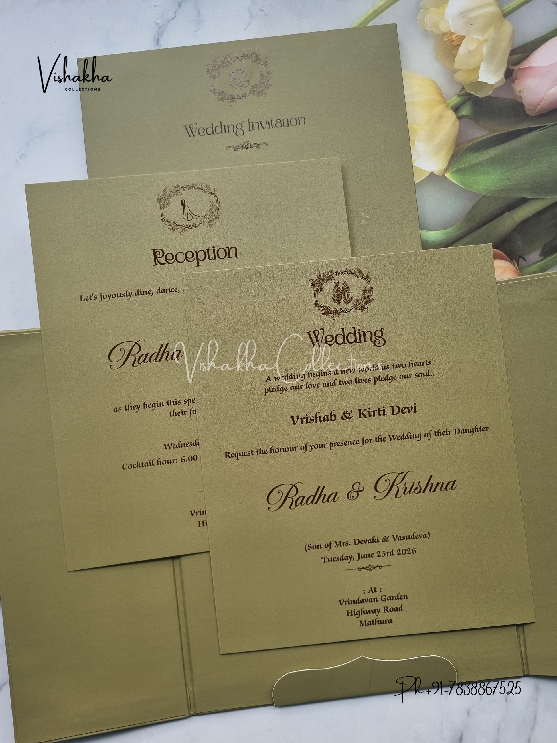 Vishakha Collections presents you beautiful luxury wedding invitation cards with all latest designs and the latest variety. Its just not a wedding invitation card but a beautiful feeling of love and relationship it carries for you. Beautifully printed and packed with a bundle of love. if you like it, dont think again, just go for it.If you are worrying about the quality of the product, send your doubts to us. We are here to help you. If you want in wholesale or bulk, dont forget to contact us.