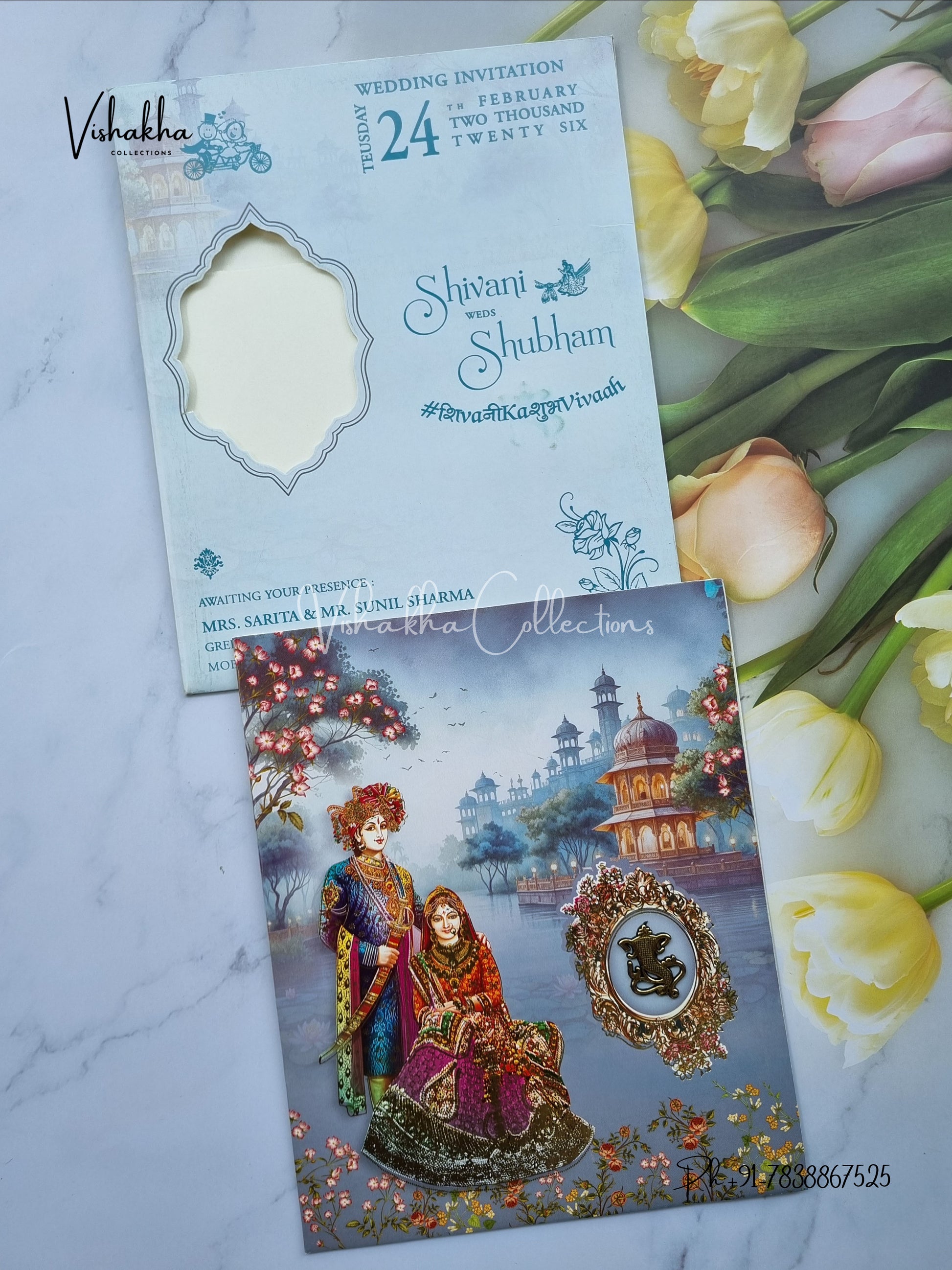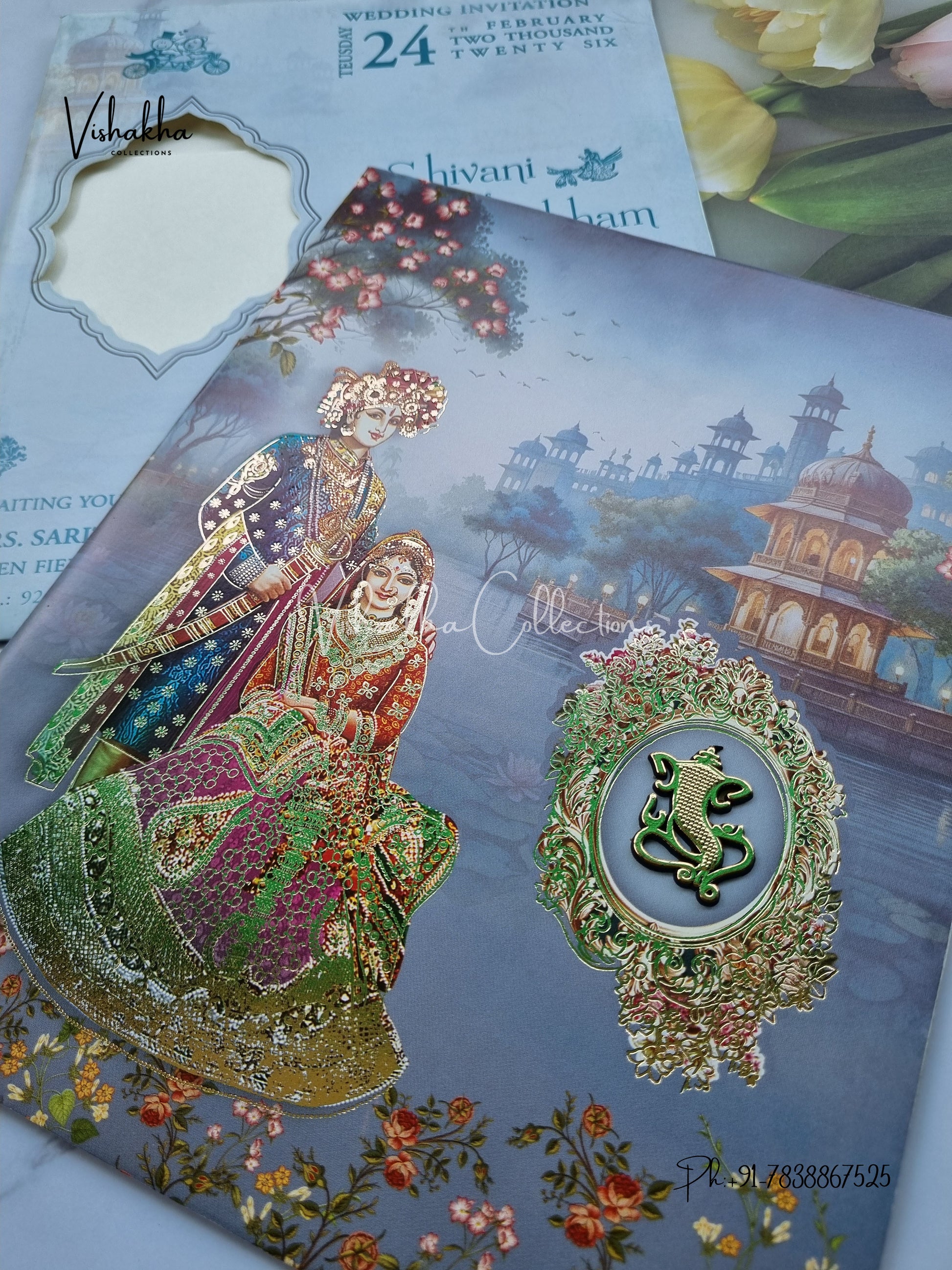 Vishakha Collections presents you beautiful luxury wedding invitation cards with all latest designs and the latest variety. Its just not a wedding invitation card but a beautiful feeling of love and relationship it carries for you. Beautifully printed and packed with a bundle of love. if you like it, dont think again, just go for it.If you are worrying about the quality of the product, send your doubts to us. We are here to help you. If you want in wholesale or bulk, dont forget to contact us.
