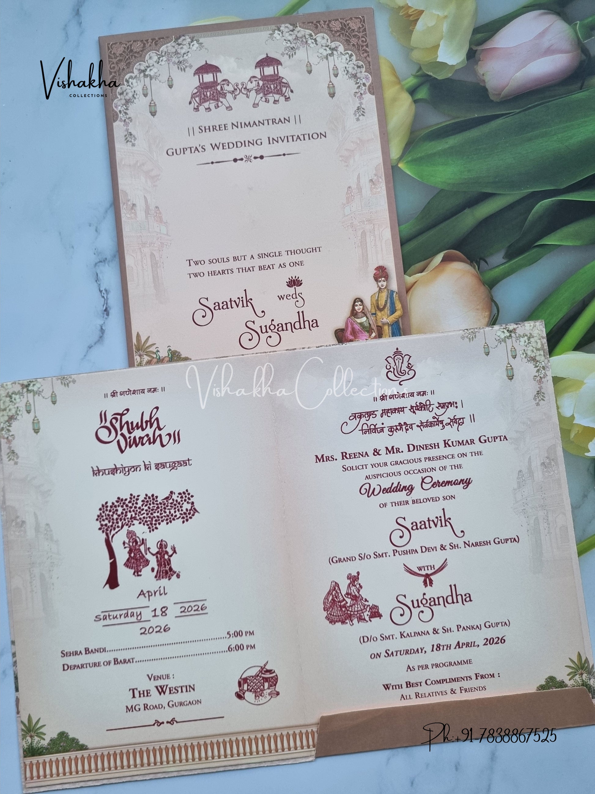 Vishakha Collections presents you beautiful luxury wedding invitation cards with all latest designs and the latest variety. Its just not a wedding invitation card but a beautiful feeling of love and relationship it carries for you. Beautifully printed and packed with a bundle of love. if you like it, dont think again, just go for it.If you are worrying about the quality of the product, send your doubts to us. We are here to help you. If you want in wholesale or bulk, dont forget to contact us.