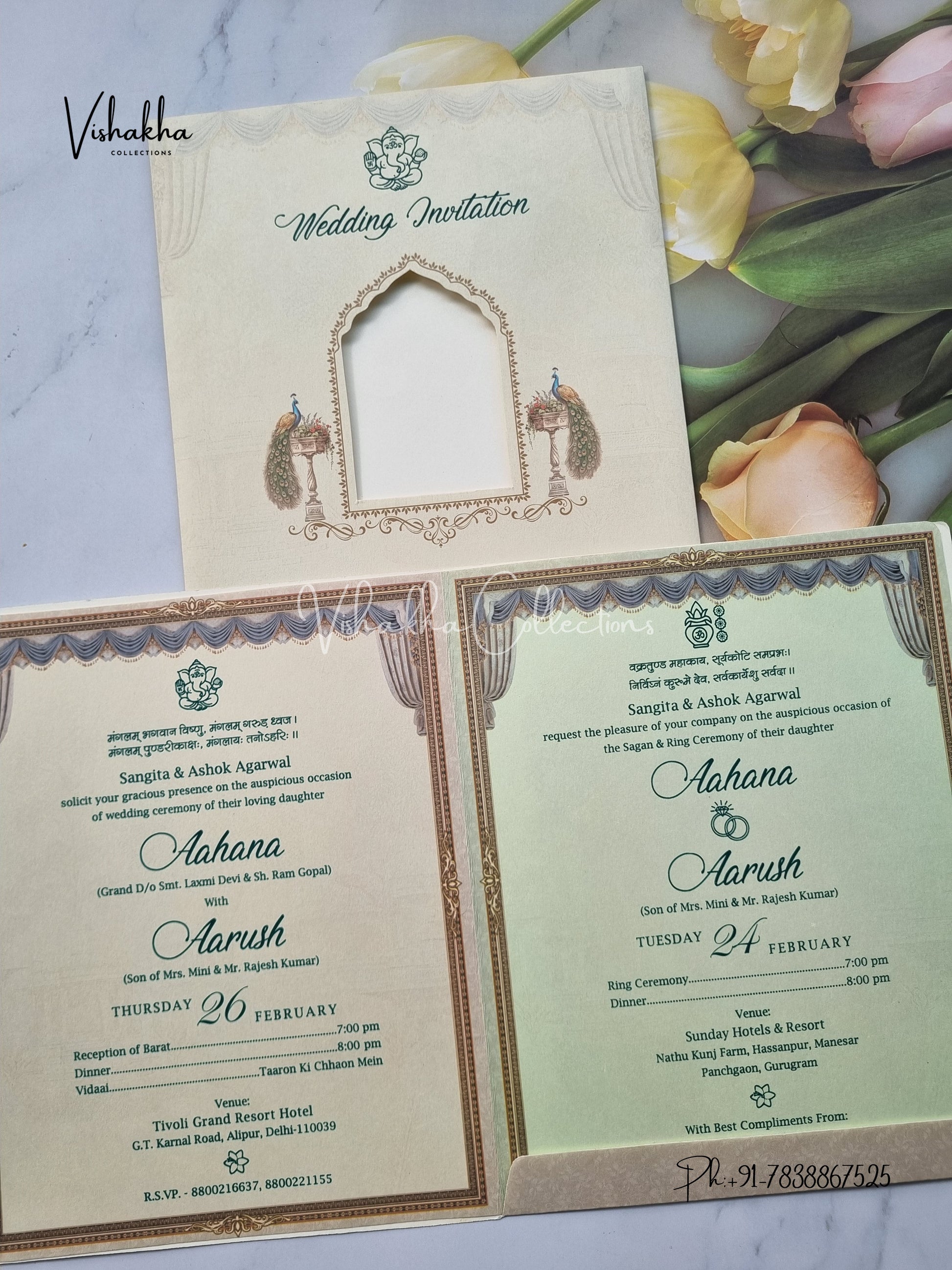 Vishakha Collections presents you beautiful luxury wedding invitation cards with all latest designs and the latest variety. Its just not a wedding invitation card but a beautiful feeling of love and relationship it carries for you. Beautifully printed and packed with a bundle of love. if you like it, dont think again, just go for it.If you are worrying about the quality of the product, send your doubts to us. We are here to help you. If you want in wholesale or bulk, dont forget to contact us.