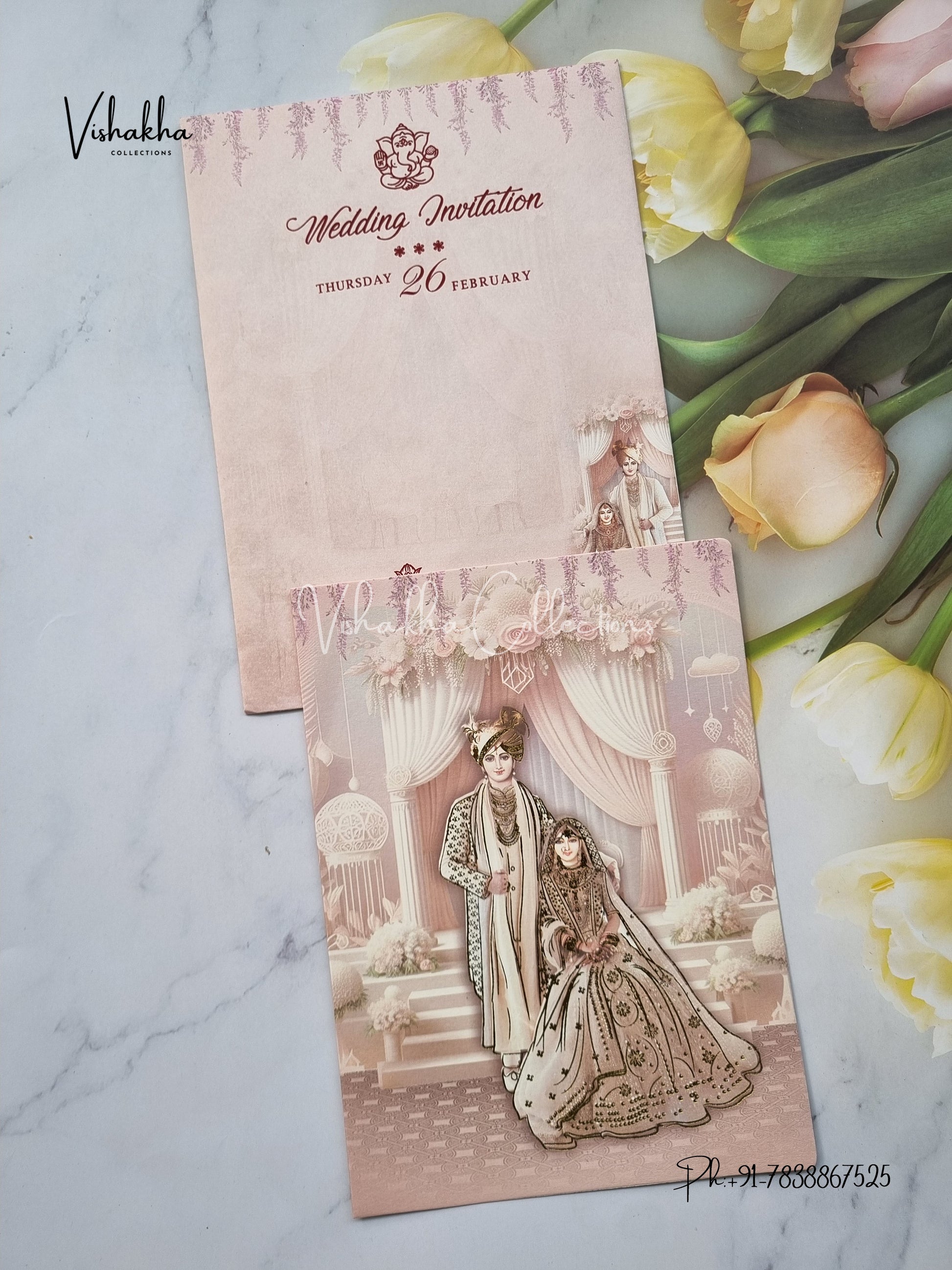 Vishakha Collections presents you beautiful luxury wedding invitation cards with all latest designs and the latest variety. Its just not a wedding invitation card but a beautiful feeling of love and relationship it carries for you. Beautifully printed and packed with a bundle of love. if you like it, dont think again, just go for it.If you are worrying about the quality of the product, send your doubts to us. We are here to help you. If you want in wholesale or bulk, dont forget to contact us.