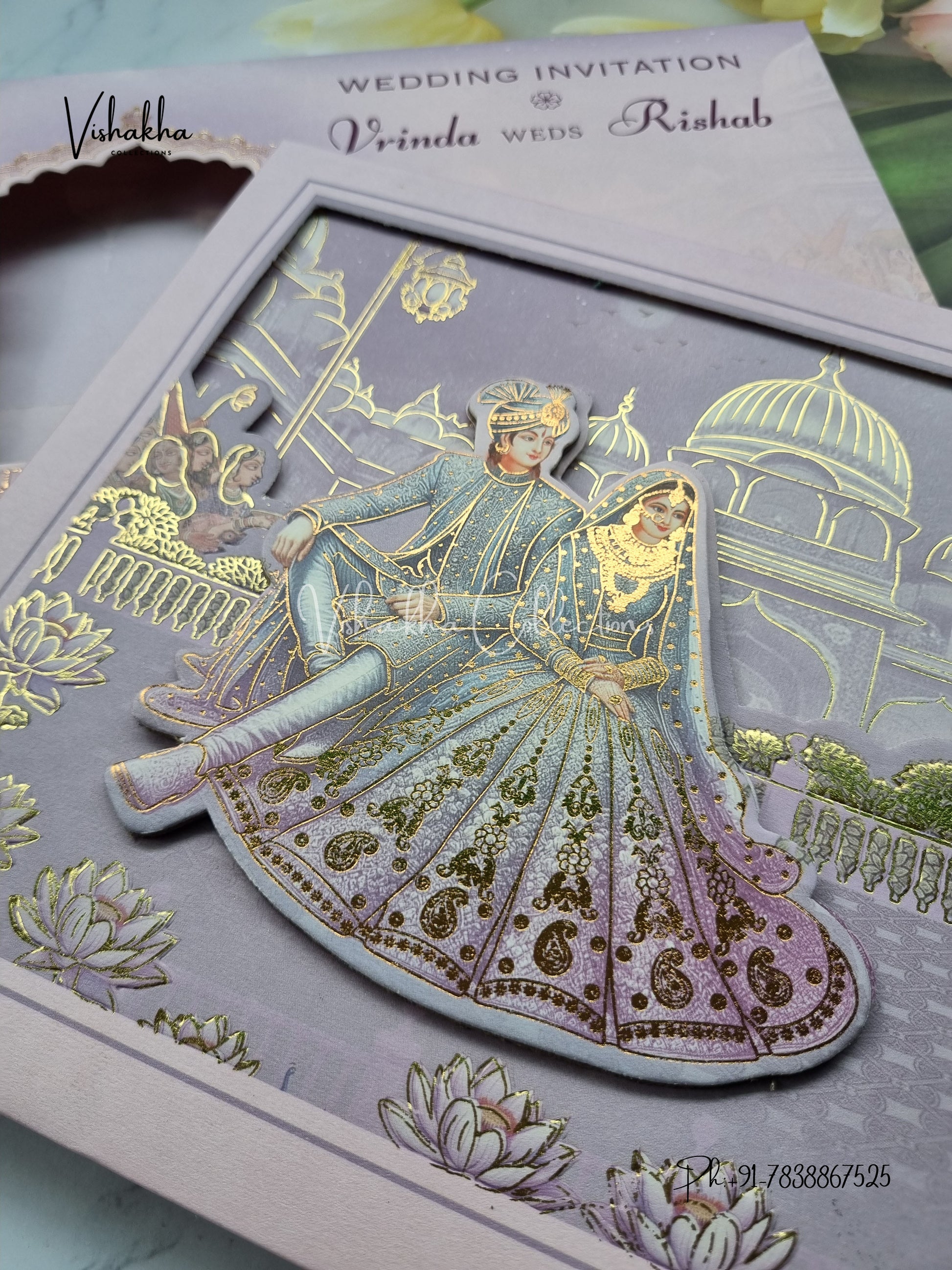 Vishakha Collections presents you beautiful luxury wedding invitation cards with all latest designs and the latest variety. Its just not a wedding invitation card but a beautiful feeling of love and relationship it carries for you. Beautifully printed and packed with a bundle of love. if you like it, dont think again, just go for it.If you are worrying about the quality of the product, send your doubts to us. We are here to help you. If you want in wholesale or bulk, dont forget to contact us.
