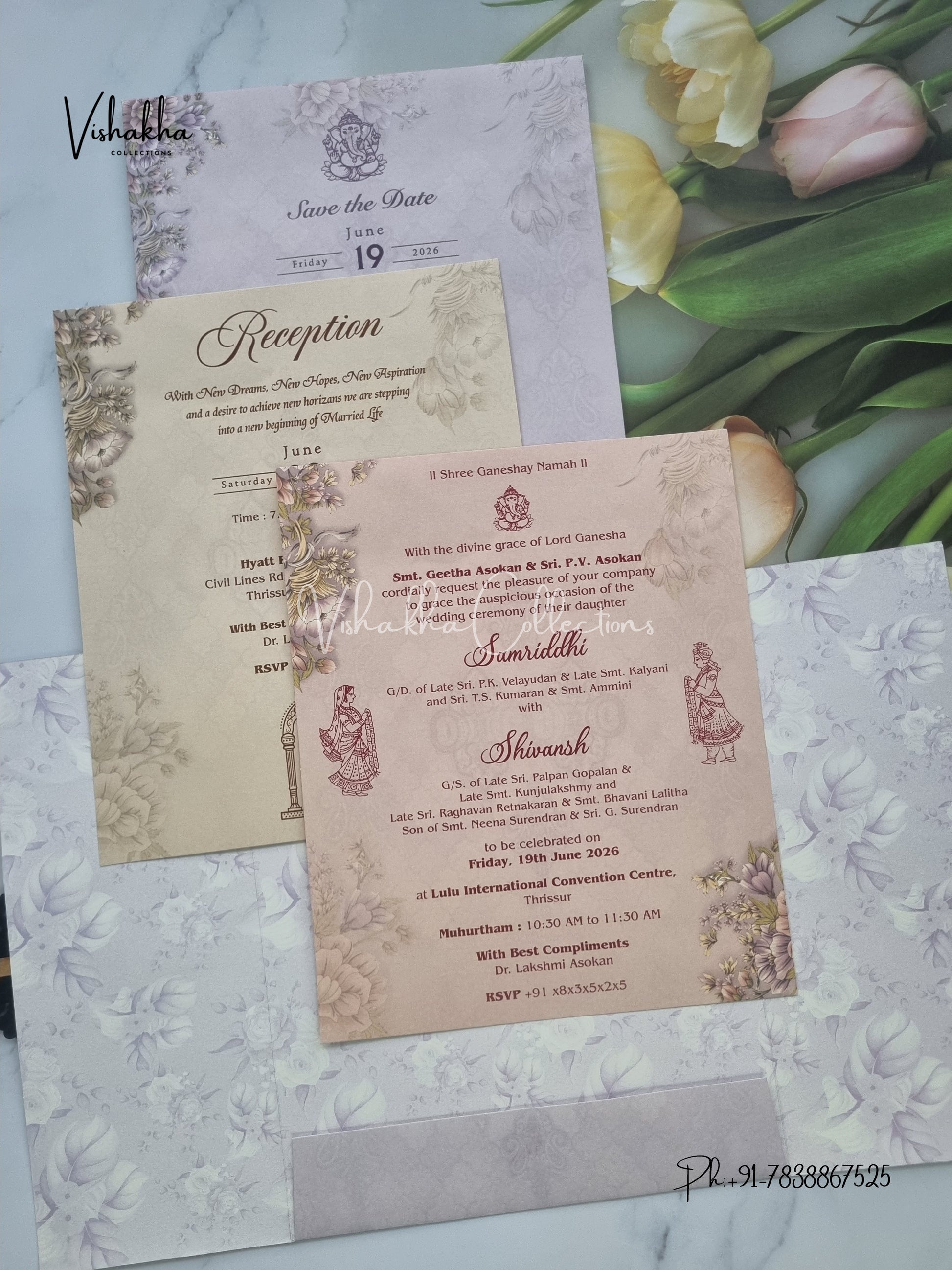 Vishakha Collections presents you beautiful luxury wedding invitation cards with all latest designs and the latest variety. Its just not a wedding invitation card but a beautiful feeling of love and relationship it carries for you. Beautifully printed and packed with a bundle of love. if you like it, dont think again, just go for it.If you are worrying about the quality of the product, send your doubts to us. We are here to help you. If you want in wholesale or bulk, dont forget to contact us.