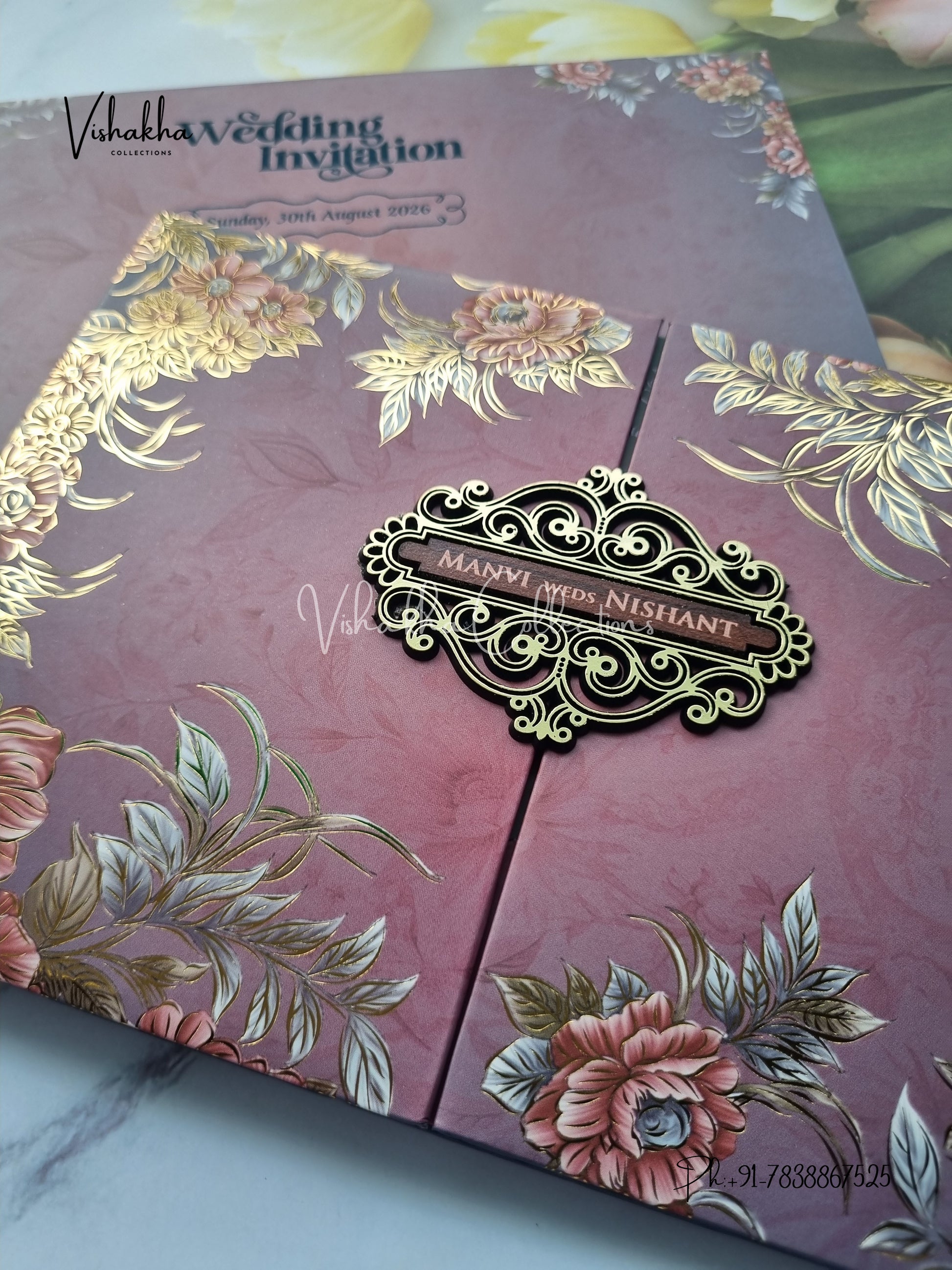 Flower Double Door Hindu Muslim Christian Sikh Padded invitation Cards VN-732