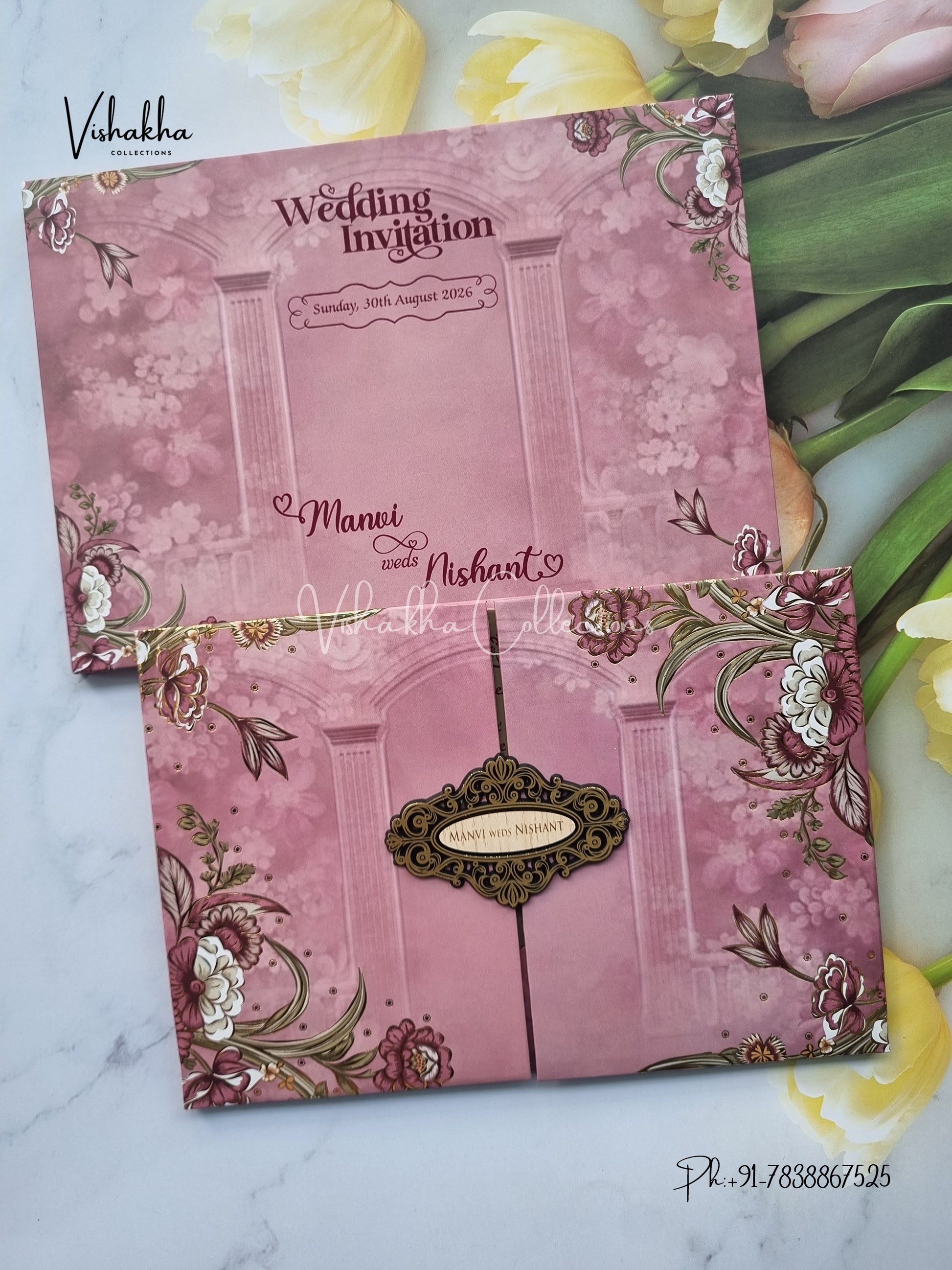 Flower Double Door Hindu Muslim Christian Sikh Padded invitation Cards VN-736