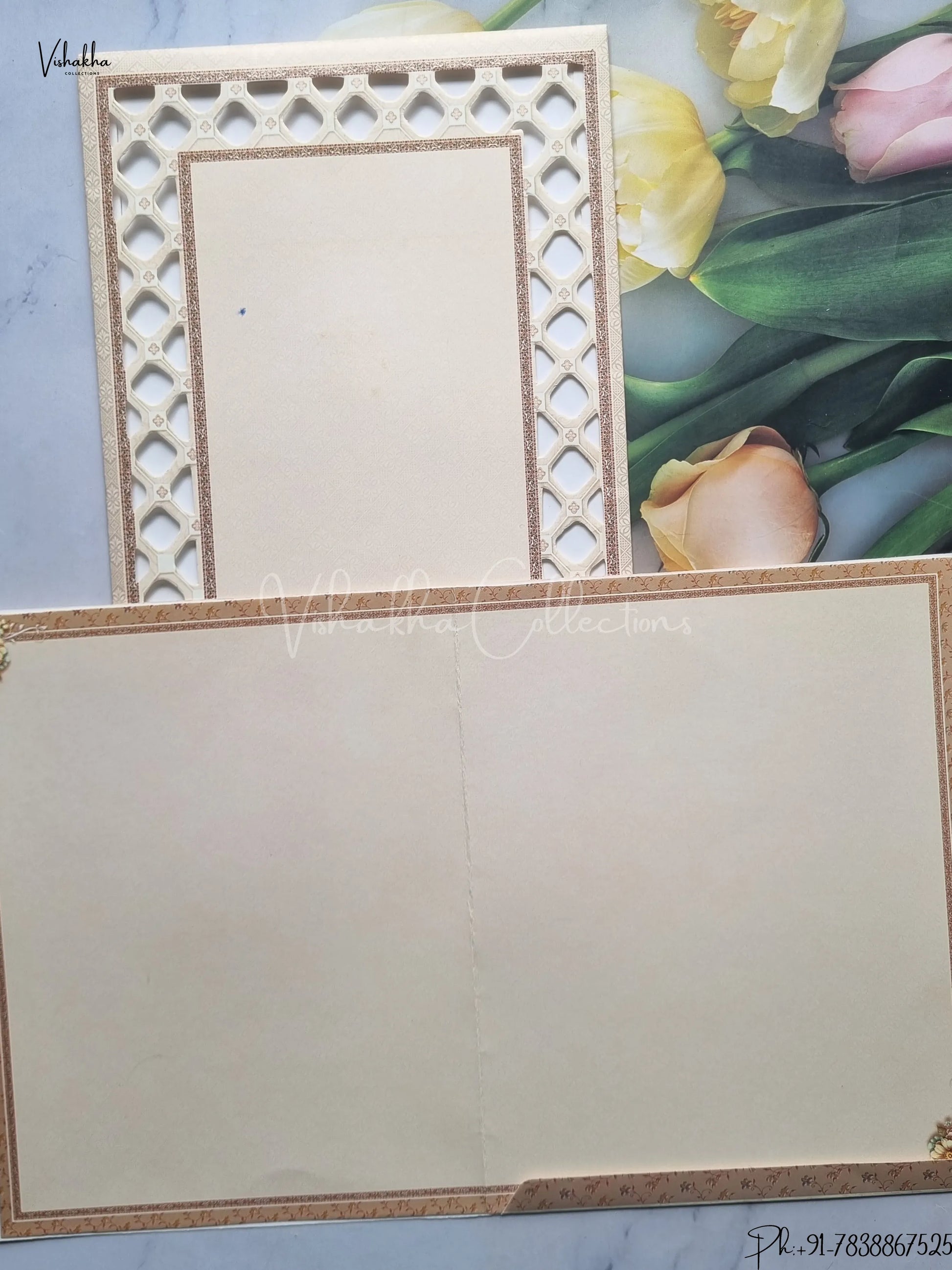 Vishakha Collections presents you beautiful luxury wedding invitation cards with all latest designs and the latest variety. Its just not a wedding invitation card but a beautiful feeling of love and relationship it carries for you. Beautifully printed and packed with a bundle of love. if you like it, dont think again, just go for it.If you are worrying about the quality of the product, send your doubts to us. We are here to help you. If you want in wholesale or bulk, dont forget to contact us.