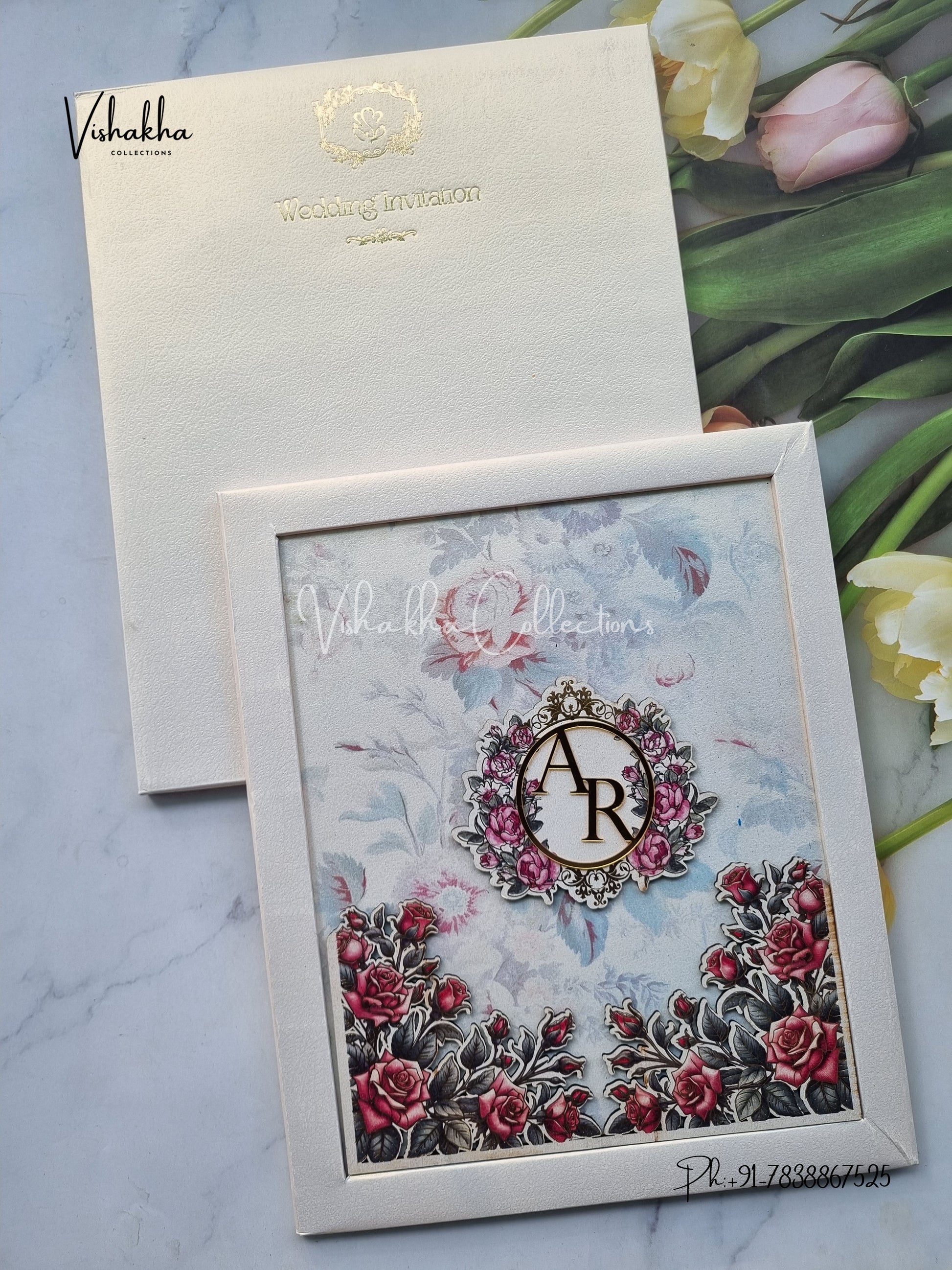 Vishakha Collections presents you beautiful luxury wedding invitation cards with all latest designs and the latest variety. Its just not a wedding invitation card but a beautiful feeling of love and relationship it carries for you. Beautifully printed and packed with a bundle of love. if you like it, dont think again, just go for it.If you are worrying about the quality of the product, send your doubts to us. We are here to help you. If you want in wholesale or bulk, dont forget to contact us.