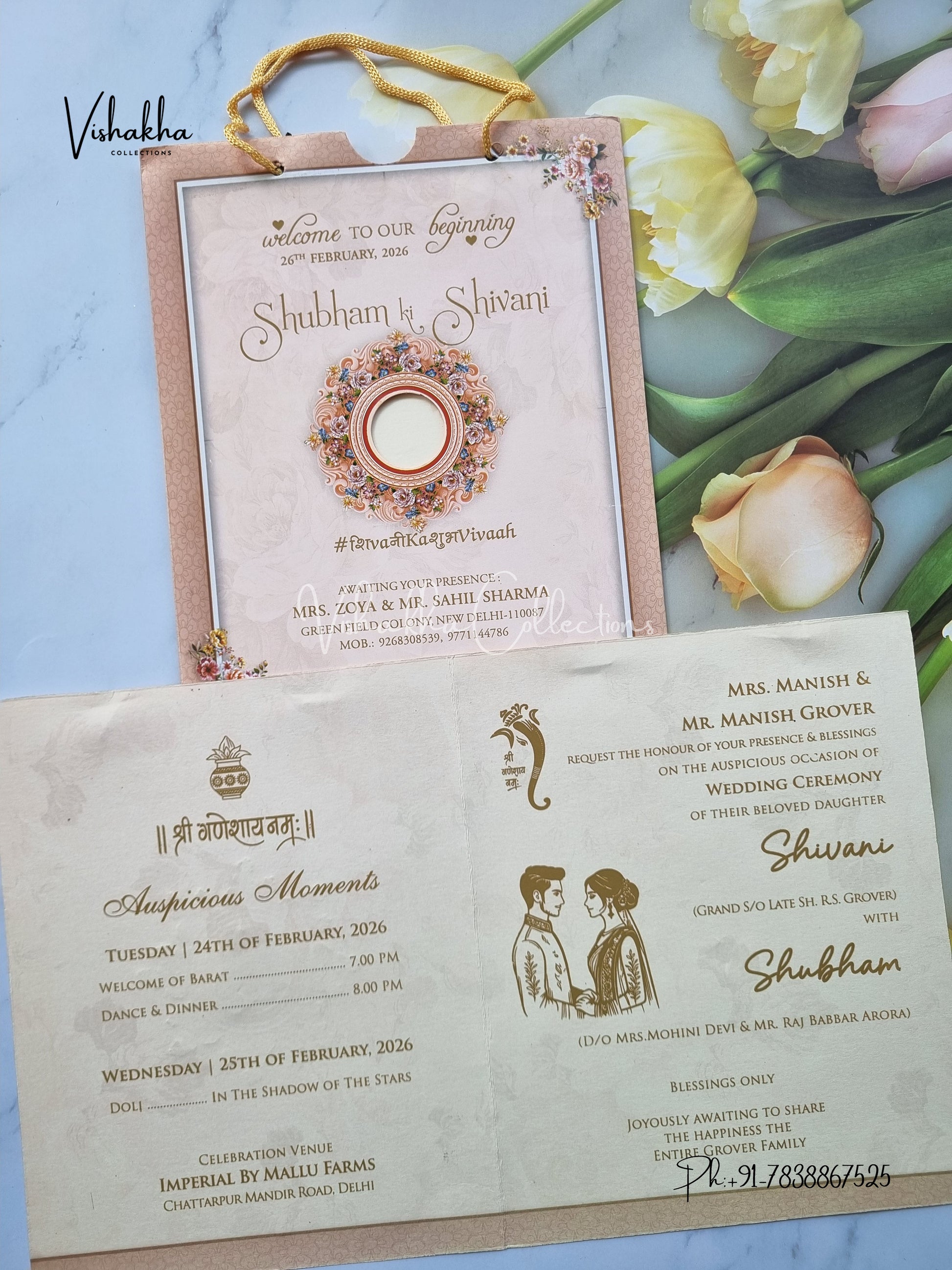 Flower Hindu Muslim Christian Sikh Carry Bag invitation Cards ATS-9274