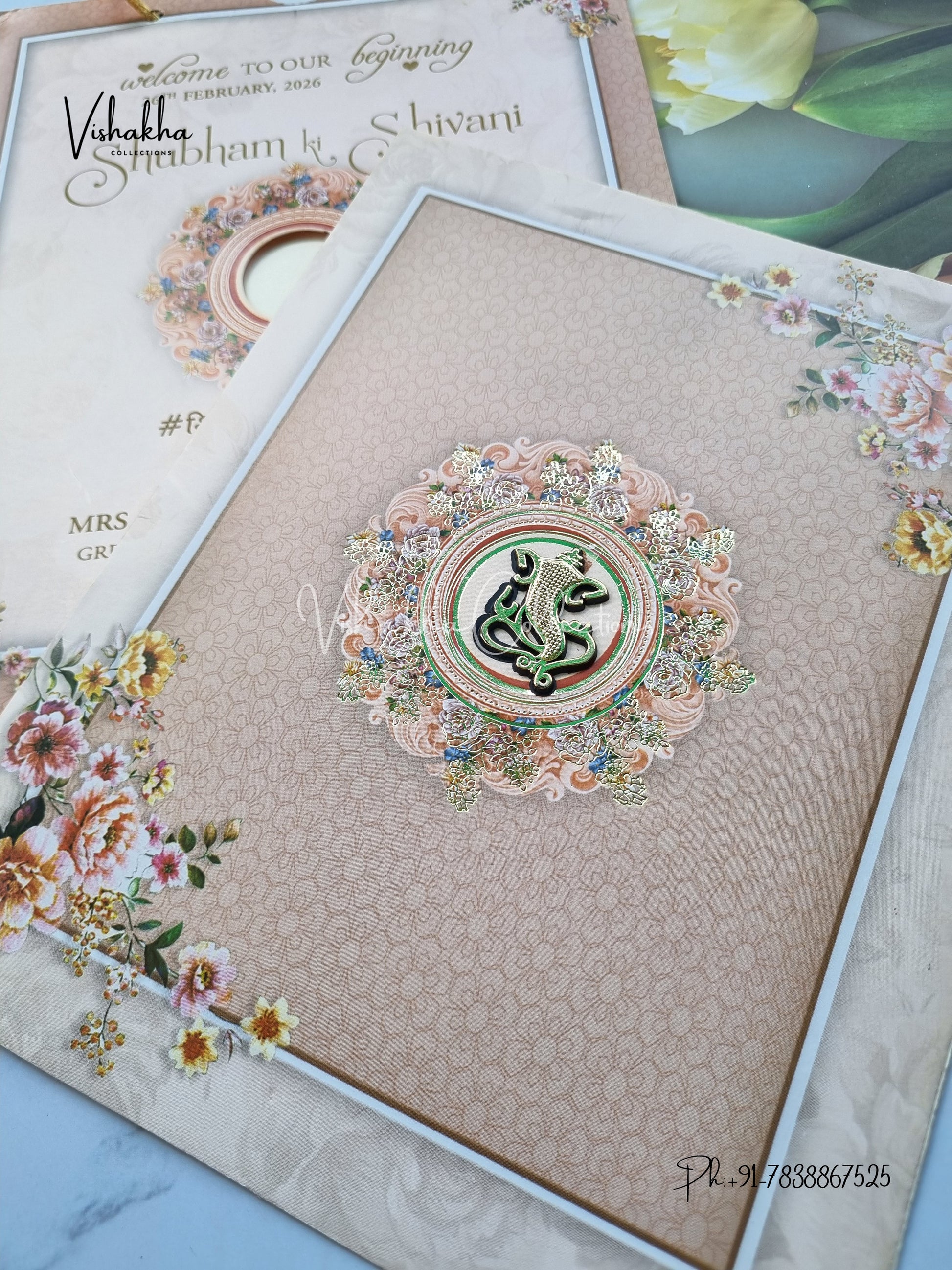 Vishakha Collections presents you beautiful luxury wedding invitation cards with all latest designs and the latest variety. Its just not a wedding invitation card but a beautiful feeling of love and relationship it carries for you. Beautifully printed and packed with a bundle of love. if you like it, dont think again, just go for it.If you are worrying about the quality of the product, send your doubts to us. We are here to help you. If you want in wholesale or bulk, dont forget to contact us.