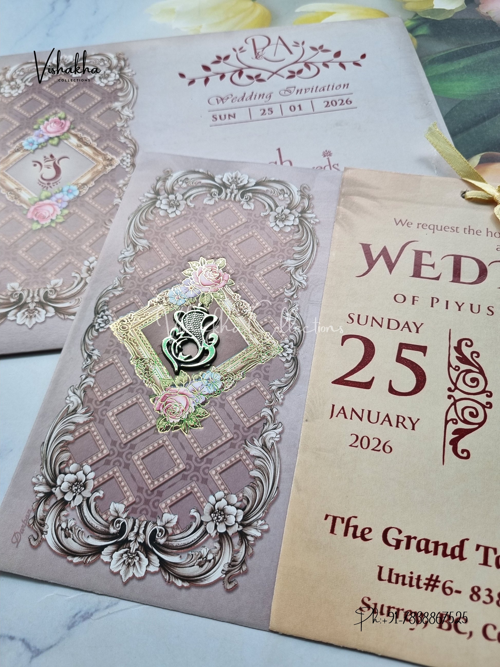 Vishakha Collections presents you beautiful luxury wedding invitation cards with all latest designs and the latest variety. Its just not a wedding invitation card but a beautiful feeling of love and relationship it carries for you. Beautifully printed and packed with a bundle of love. if you like it, dont think again, just go for it.If you are worrying about the quality of the product, send your doubts to us. We are here to help you. If you want in wholesale or bulk, dont forget to contact us.