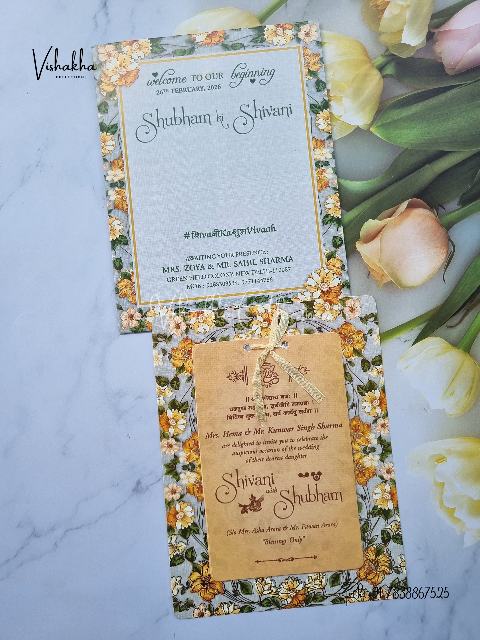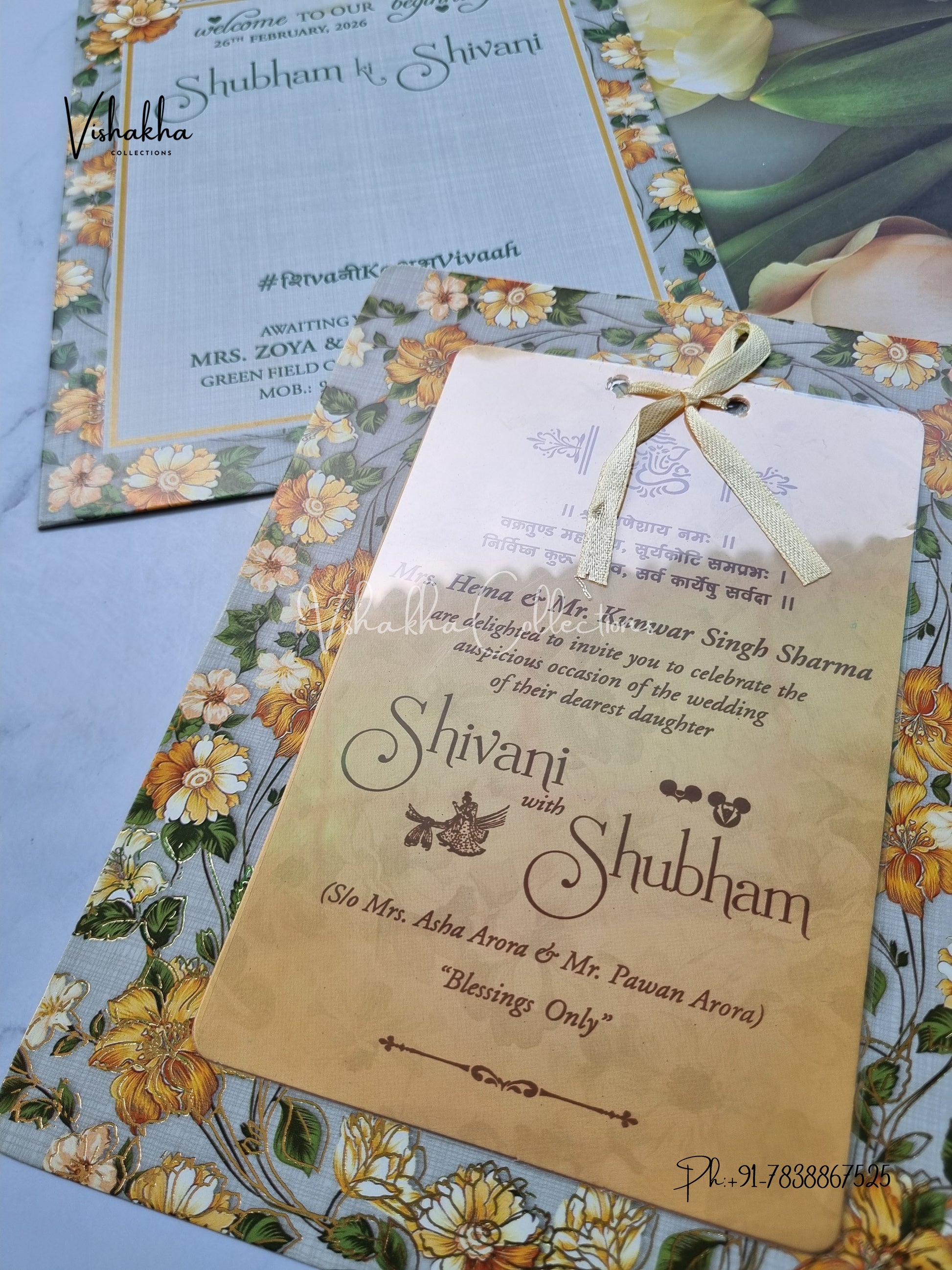 Vishakha Collections presents you beautiful luxury wedding invitation cards with all latest designs and the latest variety. Its just not a wedding invitation card but a beautiful feeling of love and relationship it carries for you. Beautifully printed and packed with a bundle of love. if you like it, dont think again, just go for it.If you are worrying about the quality of the product, send your doubts to us. We are here to help you. If you want in wholesale or bulk, dont forget to contact us.