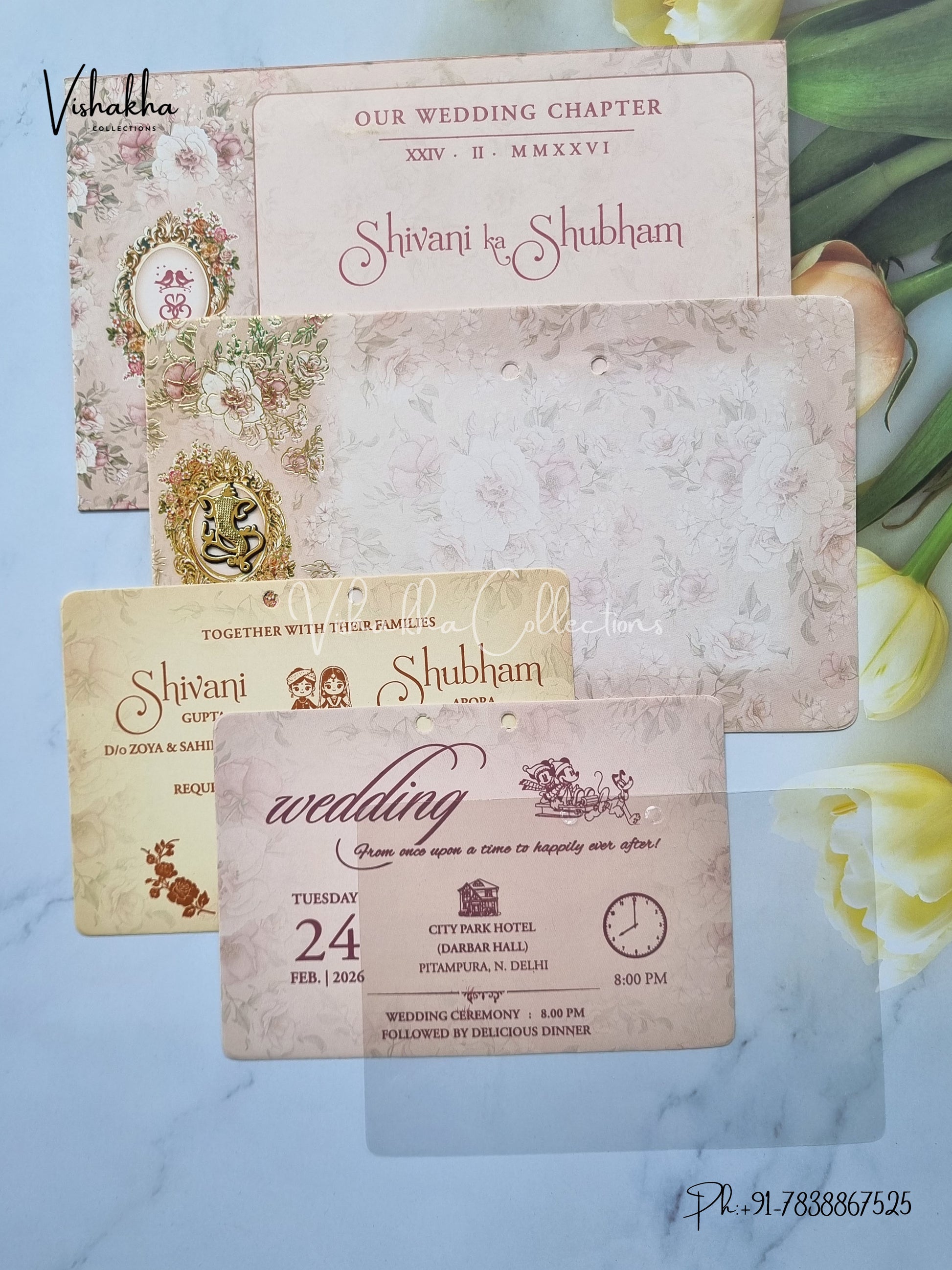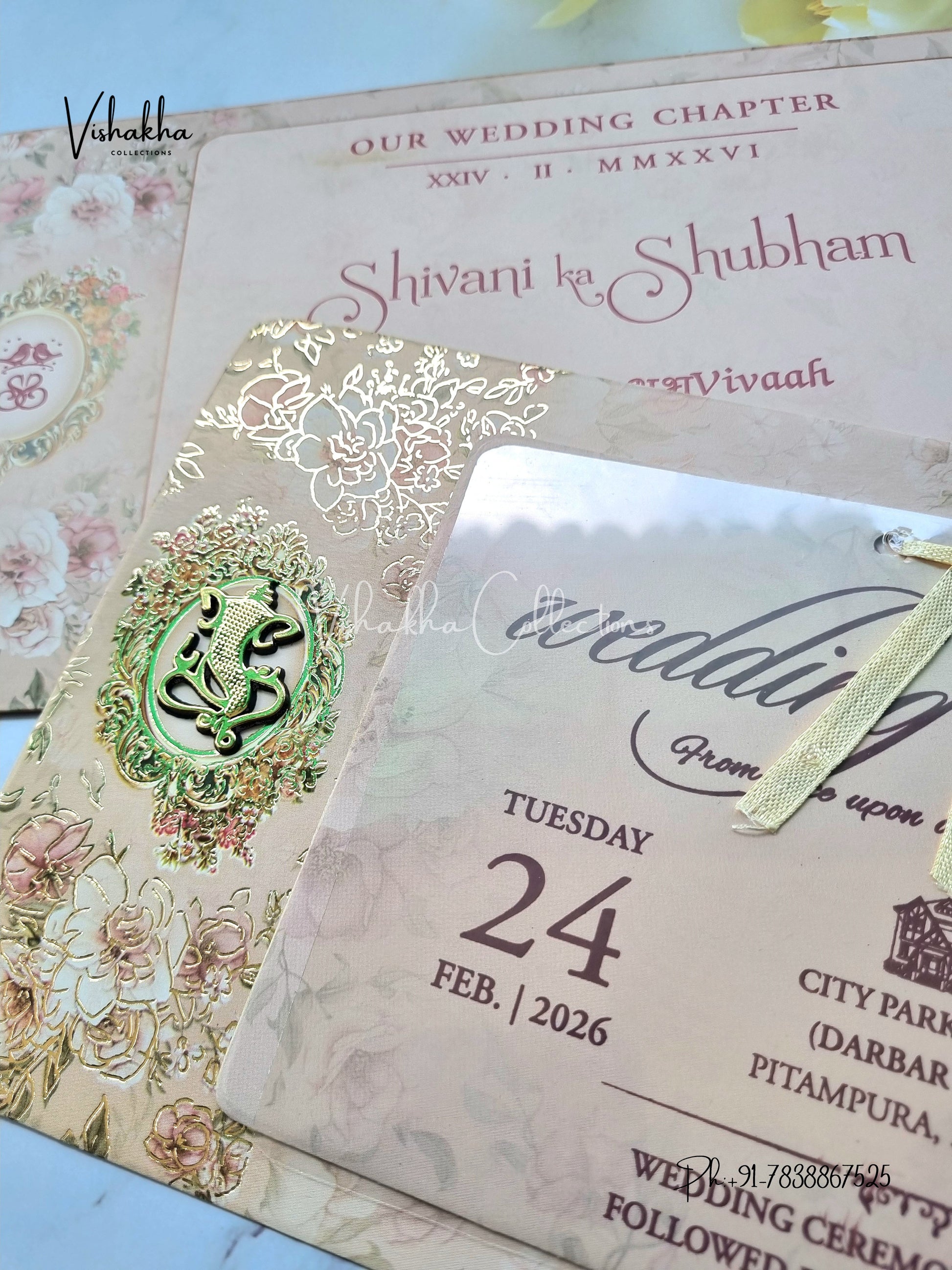 Vishakha Collections presents you beautiful luxury wedding invitation cards with all latest designs and the latest variety. Its just not a wedding invitation card but a beautiful feeling of love and relationship it carries for you. Beautifully printed and packed with a bundle of love. if you like it, dont think again, just go for it.If you are worrying about the quality of the product, send your doubts to us. We are here to help you. If you want in wholesale or bulk, dont forget to contact us.