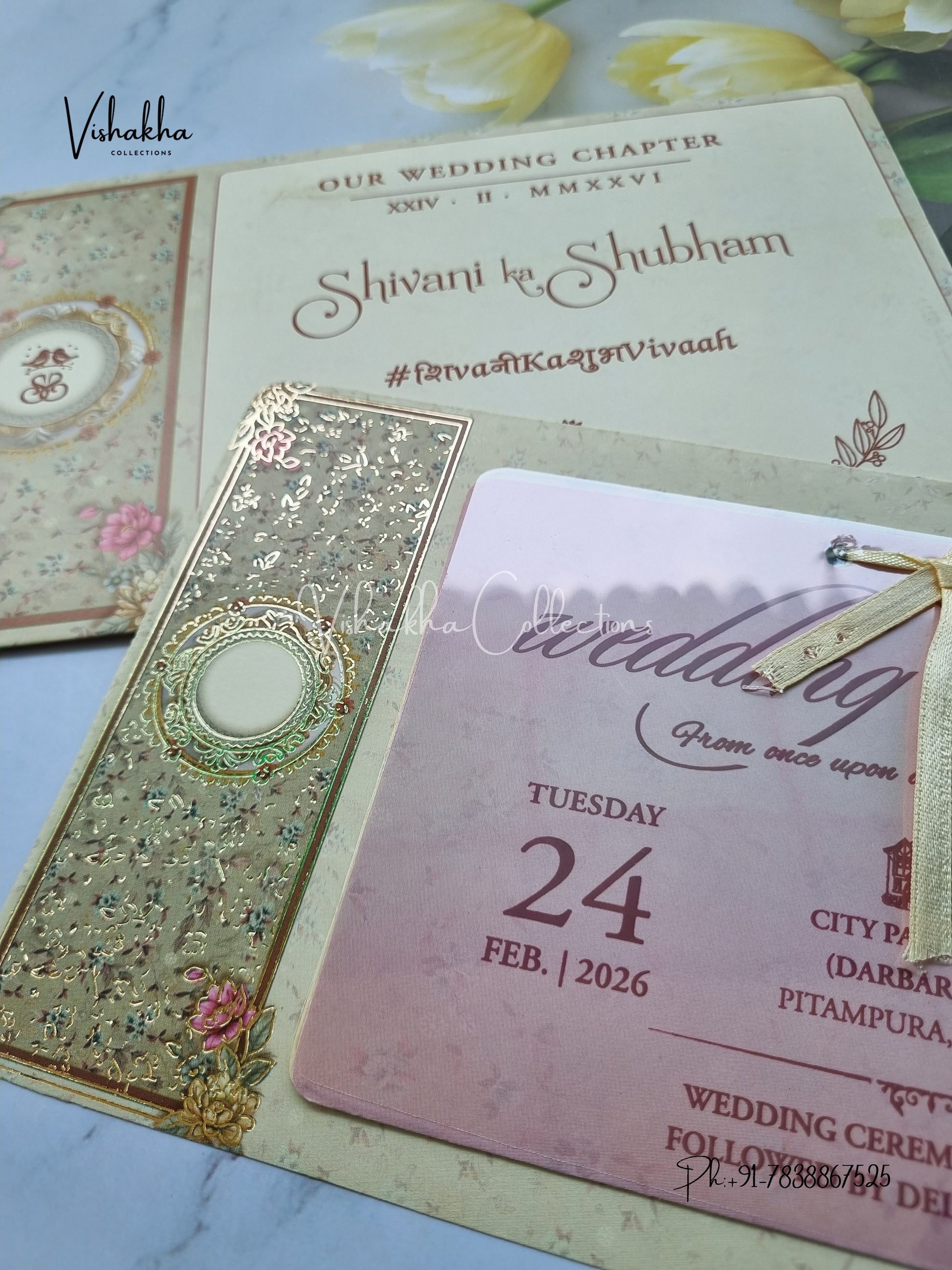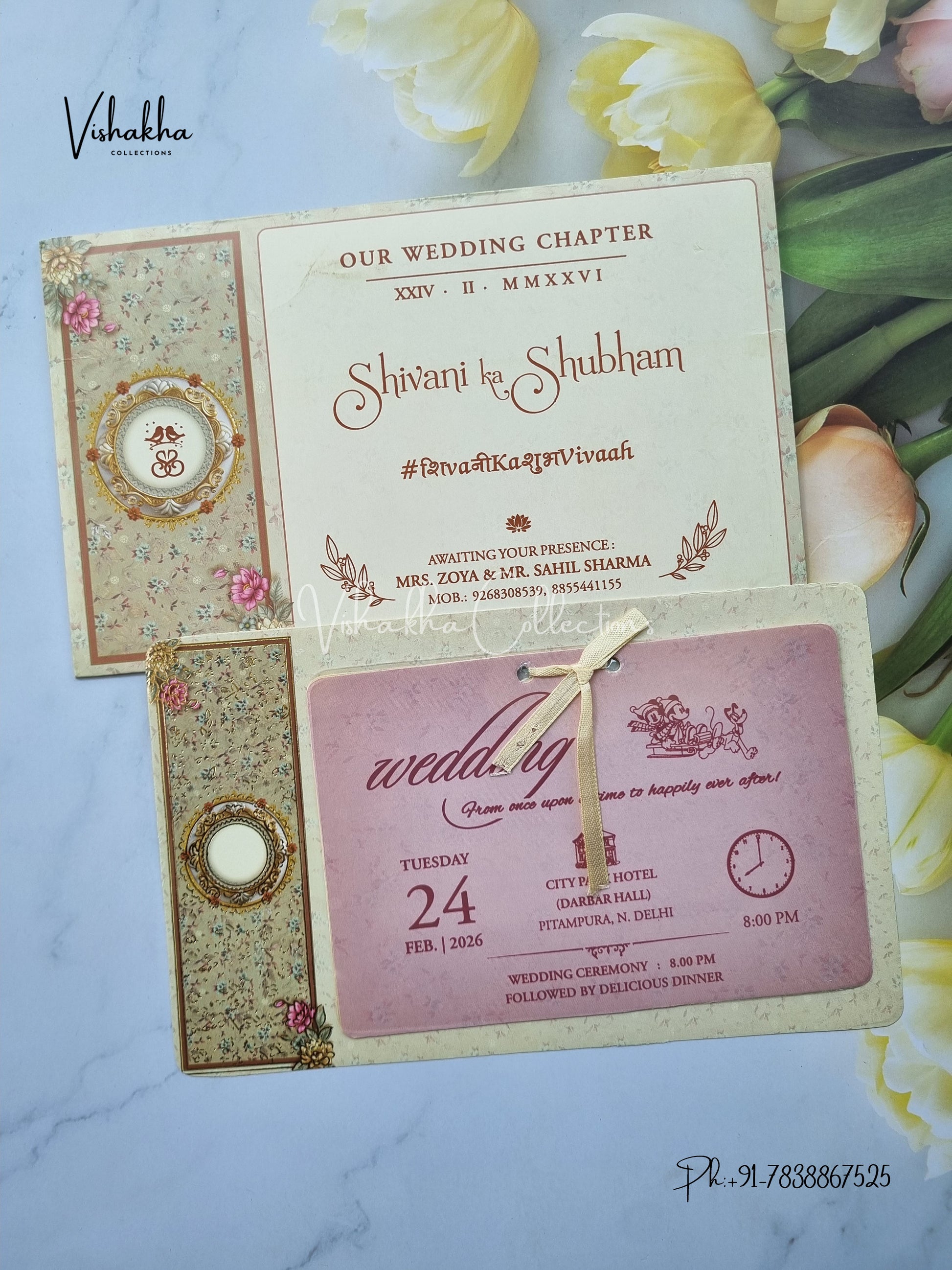 Vishakha Collections presents you beautiful luxury wedding invitation cards with all latest designs and the latest variety. Its just not a wedding invitation card but a beautiful feeling of love and relationship it carries for you. Beautifully printed and packed with a bundle of love. if you like it, dont think again, just go for it.If you are worrying about the quality of the product, send your doubts to us. We are here to help you. If you want in wholesale or bulk, dont forget to contact us.