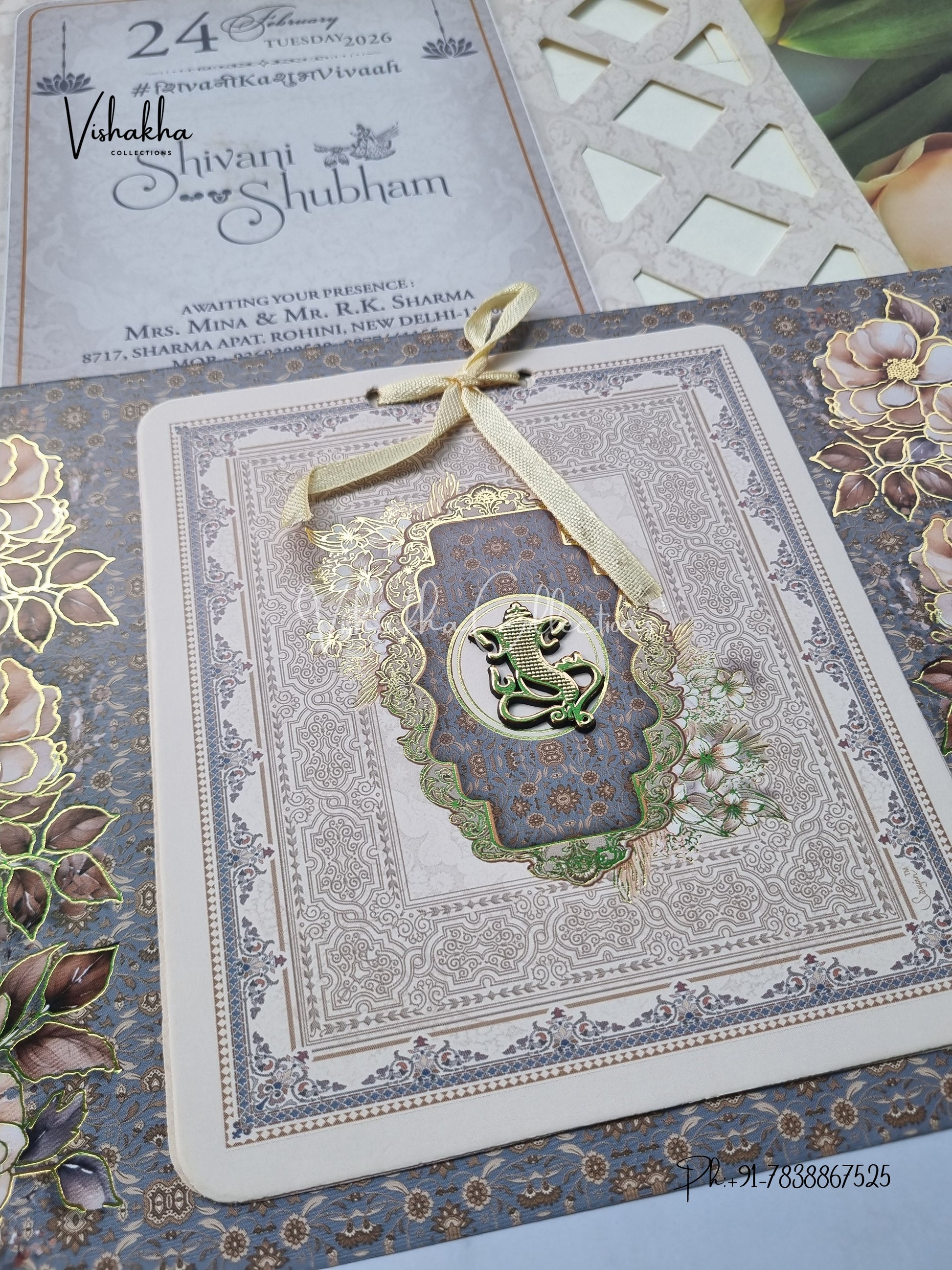 Vishakha Collections presents you beautiful luxury wedding invitation cards with all latest designs and the latest variety. Its just not a wedding invitation card but a beautiful feeling of love and relationship it carries for you. Beautifully printed and packed with a bundle of love. if you like it, dont think again, just go for it.If you are worrying about the quality of the product, send your doubts to us. We are here to help you. If you want in wholesale or bulk, dont forget to contact us.