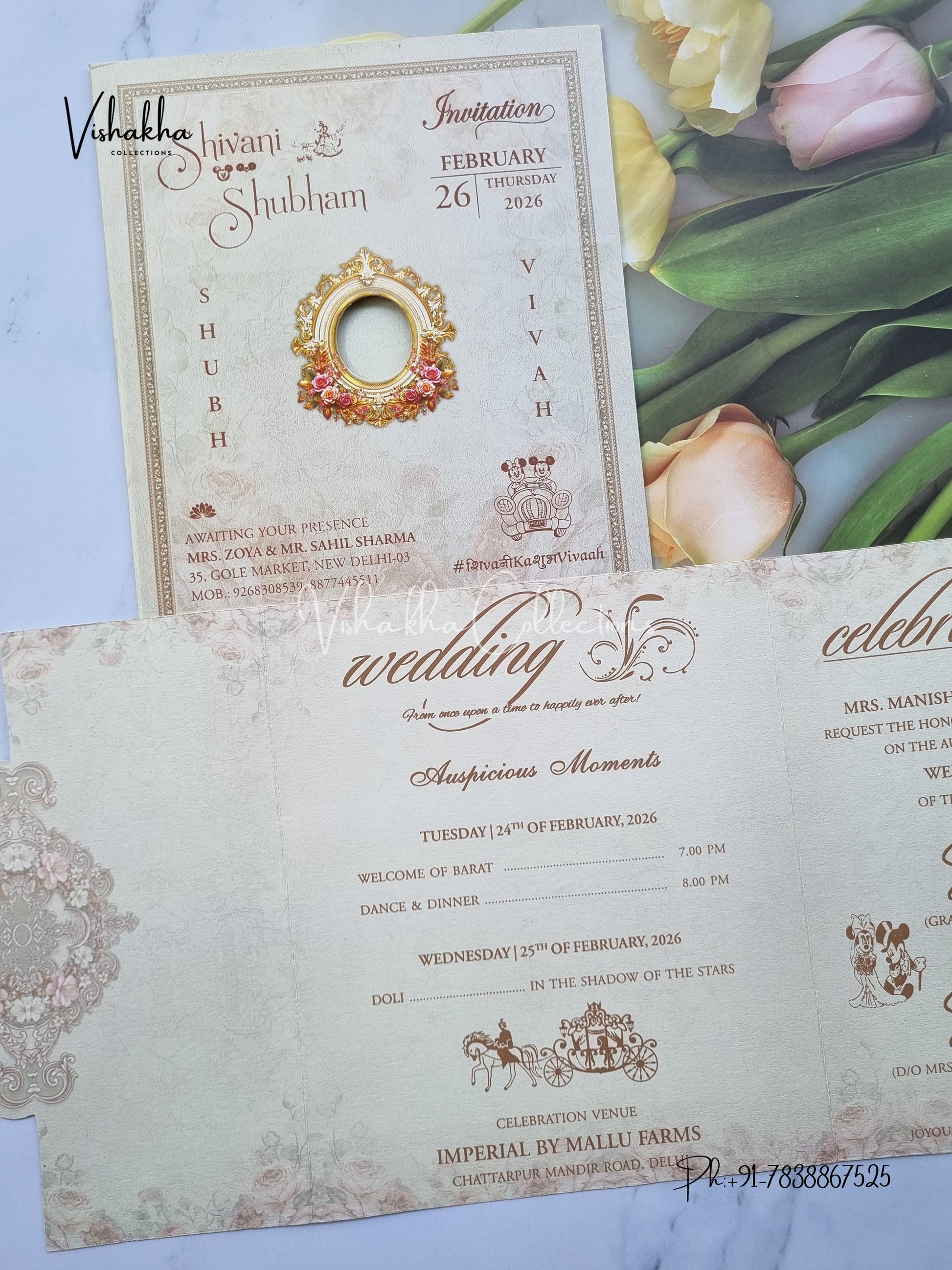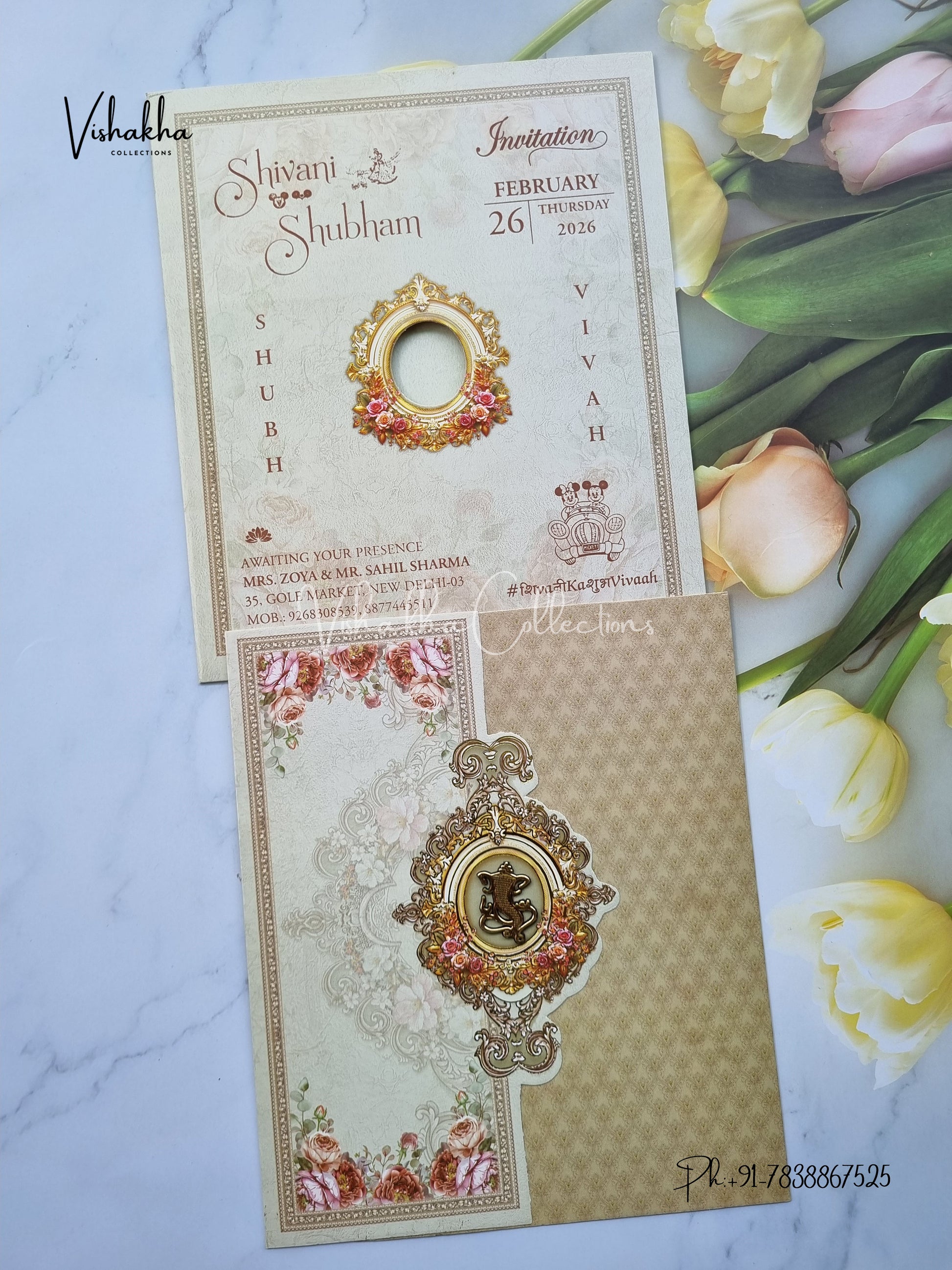 Vishakha Collections presents you beautiful luxury wedding invitation cards with all latest designs and the latest variety. Its just not a wedding invitation card but a beautiful feeling of love and relationship it carries for you. Beautifully printed and packed with a bundle of love. if you like it, dont think again, just go for it.If you are worrying about the quality of the product, send your doubts to us. We are here to help you. If you want in wholesale or bulk, dont forget to contact us.