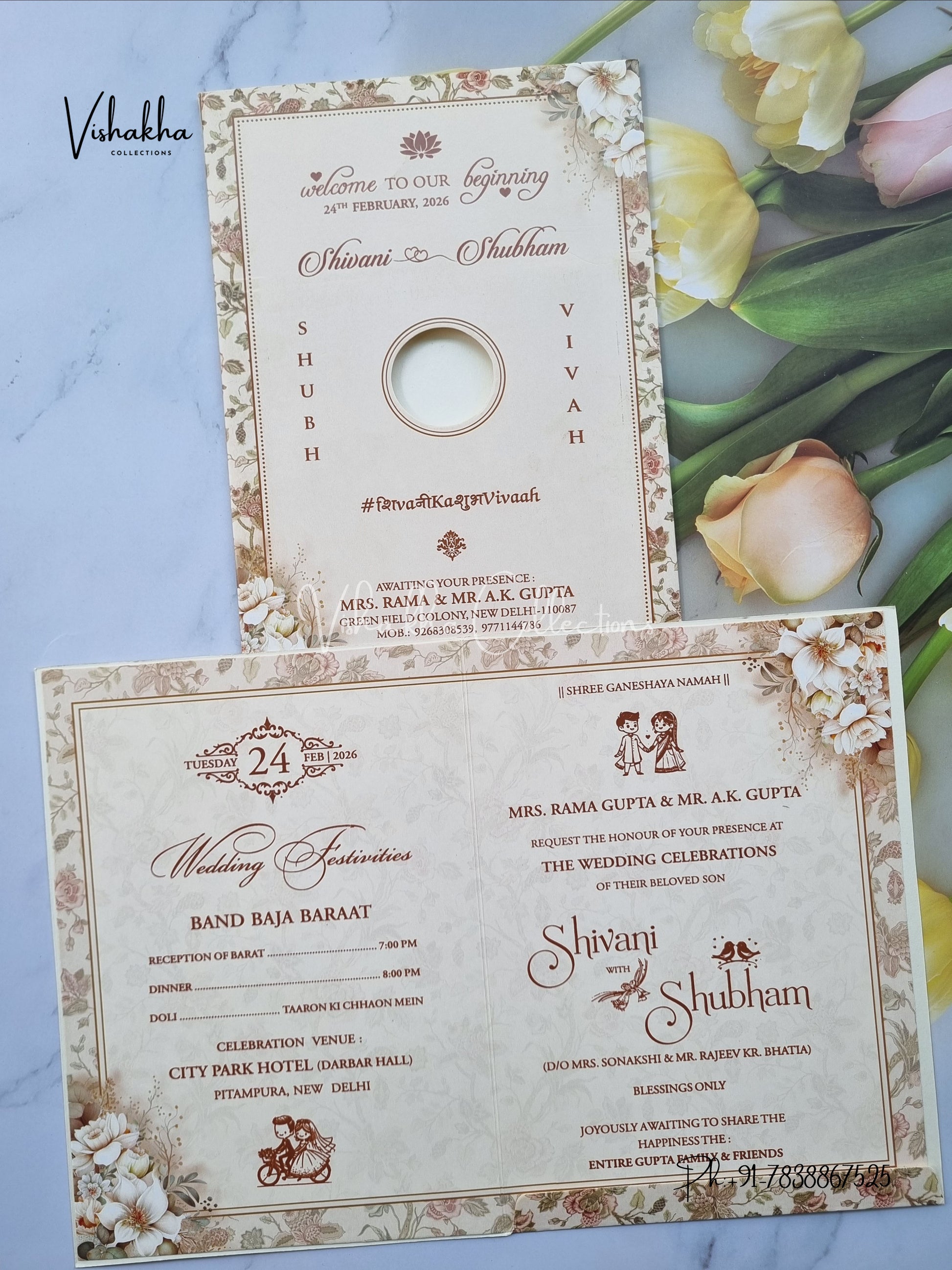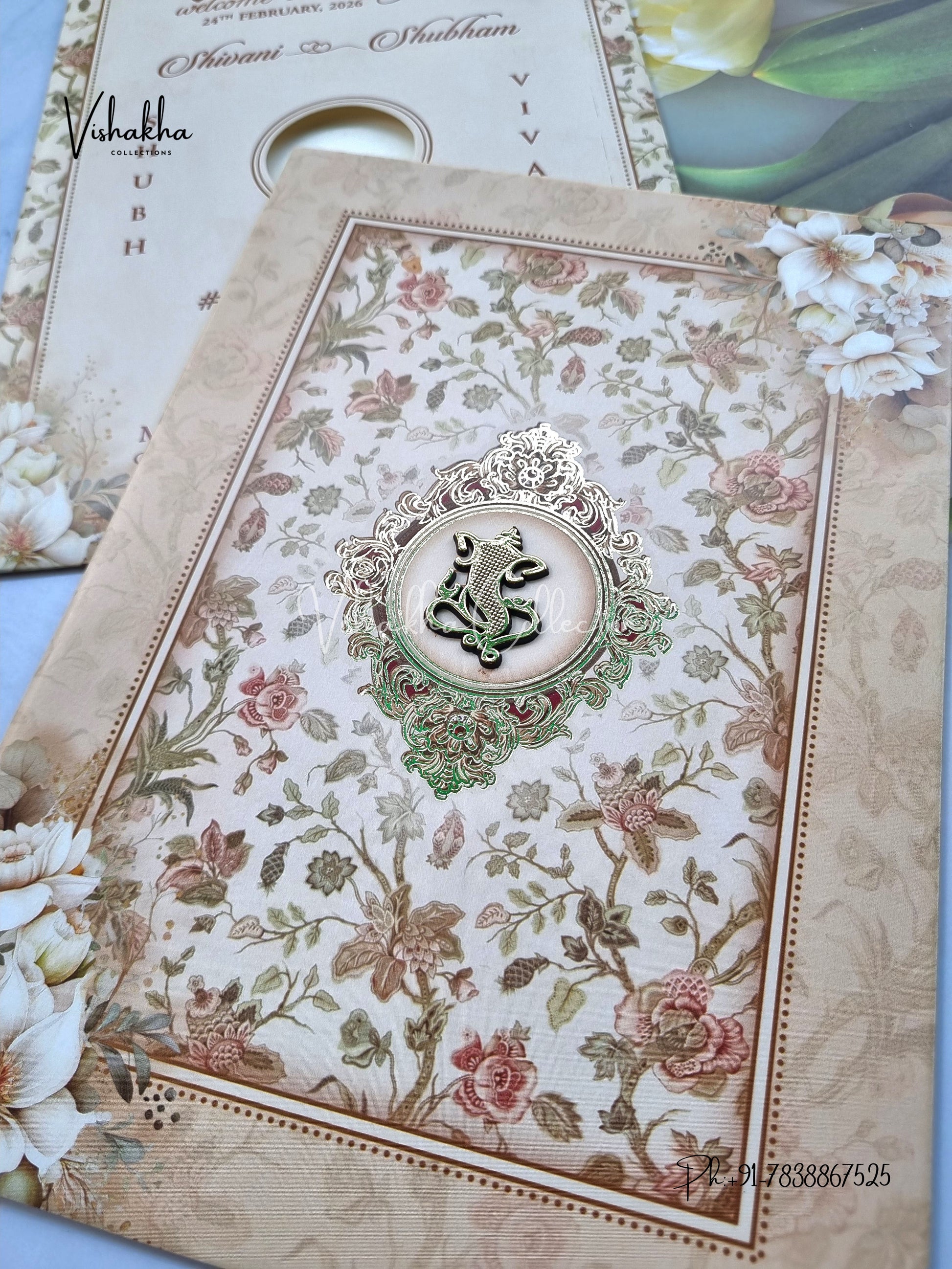 Vishakha Collections presents you beautiful luxury wedding invitation cards with all latest designs and the latest variety. Its just not a wedding invitation card but a beautiful feeling of love and relationship it carries for you. Beautifully printed and packed with a bundle of love. if you like it, dont think again, just go for it.If you are worrying about the quality of the product, send your doubts to us. We are here to help you. If you want in wholesale or bulk, dont forget to contact us.