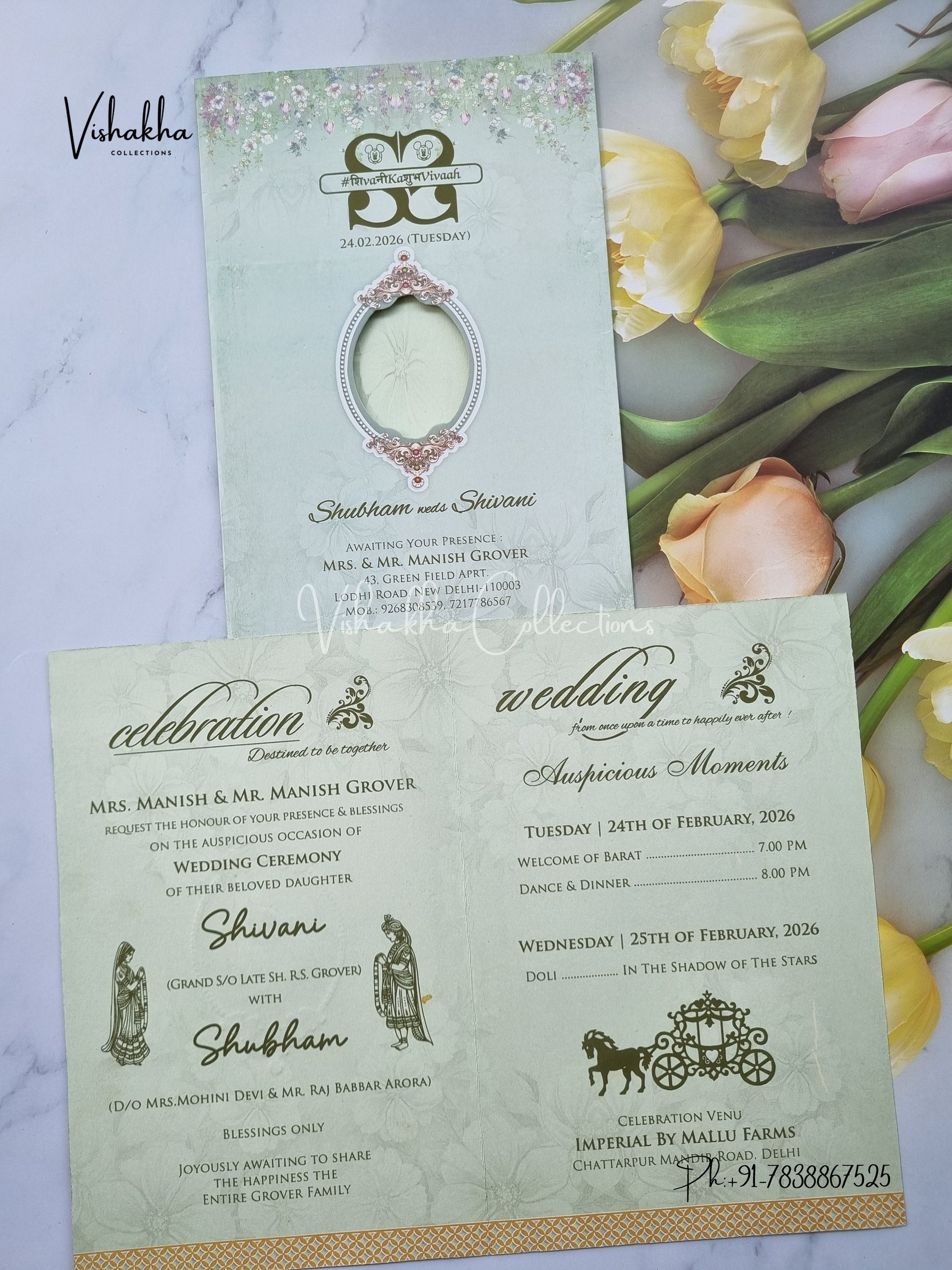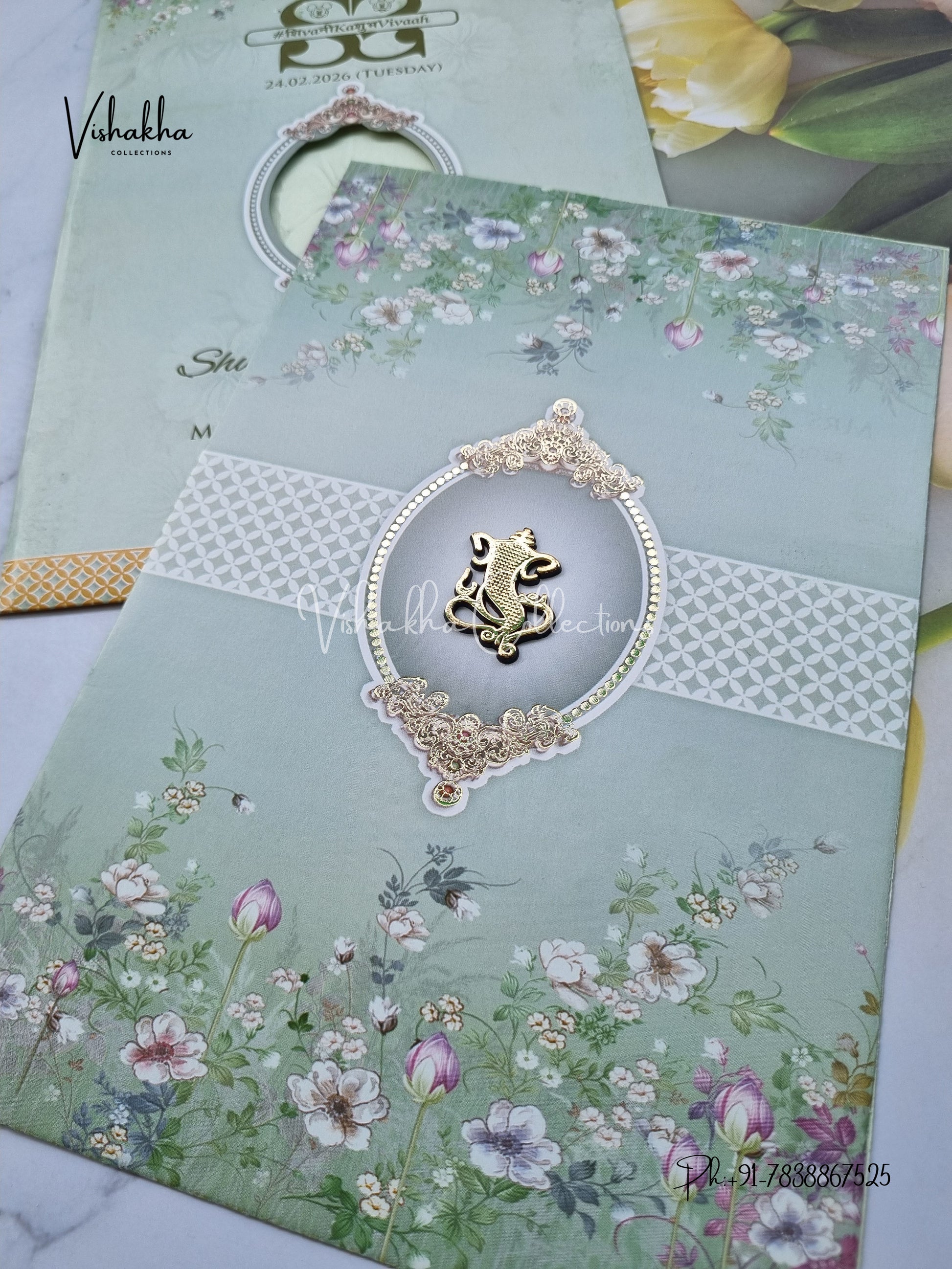 Vishakha Collections presents you beautiful luxury wedding invitation cards with all latest designs and the latest variety. Its just not a wedding invitation card but a beautiful feeling of love and relationship it carries for you. Beautifully printed and packed with a bundle of love. if you like it, dont think again, just go for it.If you are worrying about the quality of the product, send your doubts to us. We are here to help you. If you want in wholesale or bulk, dont forget to contact us.