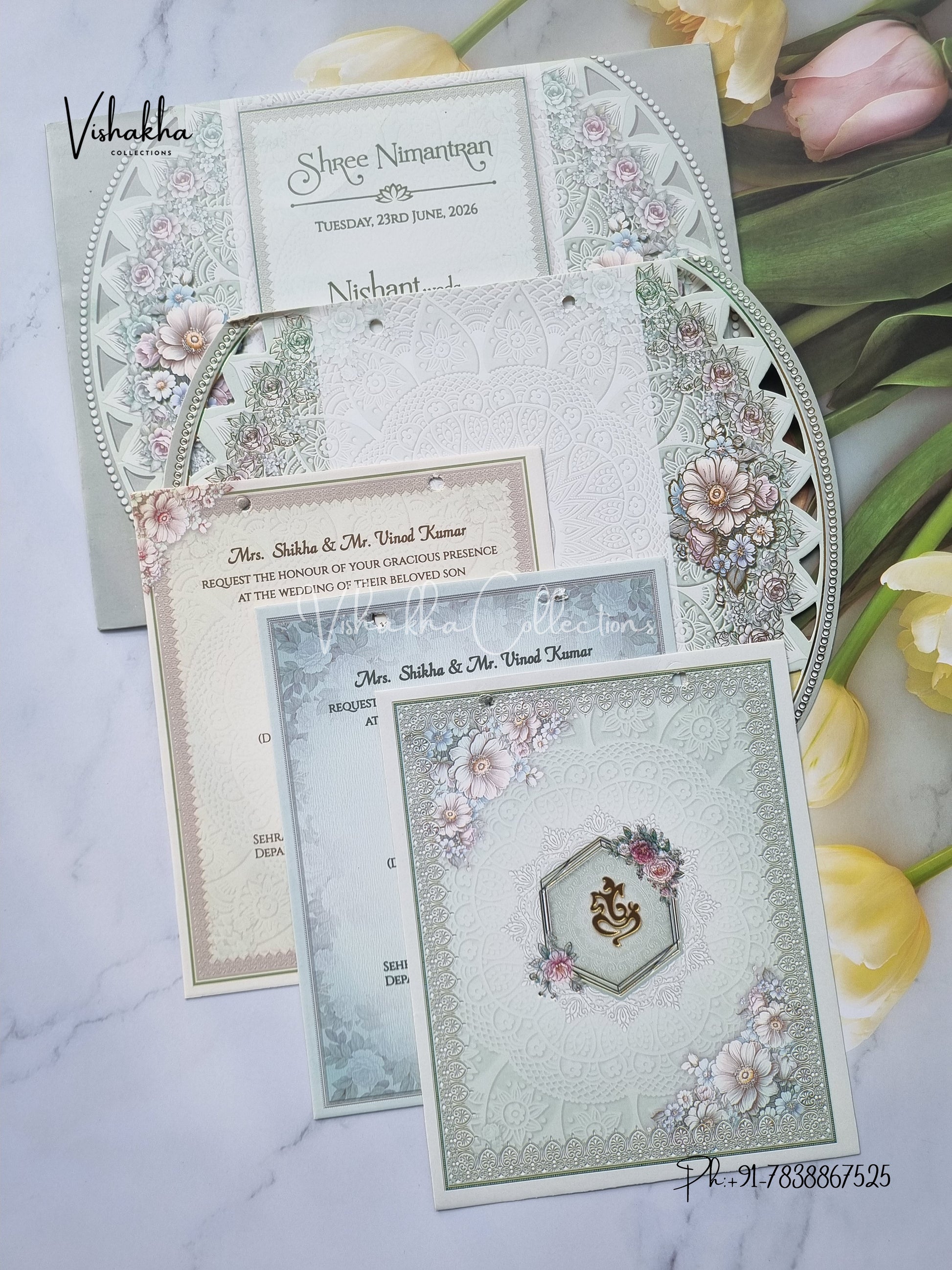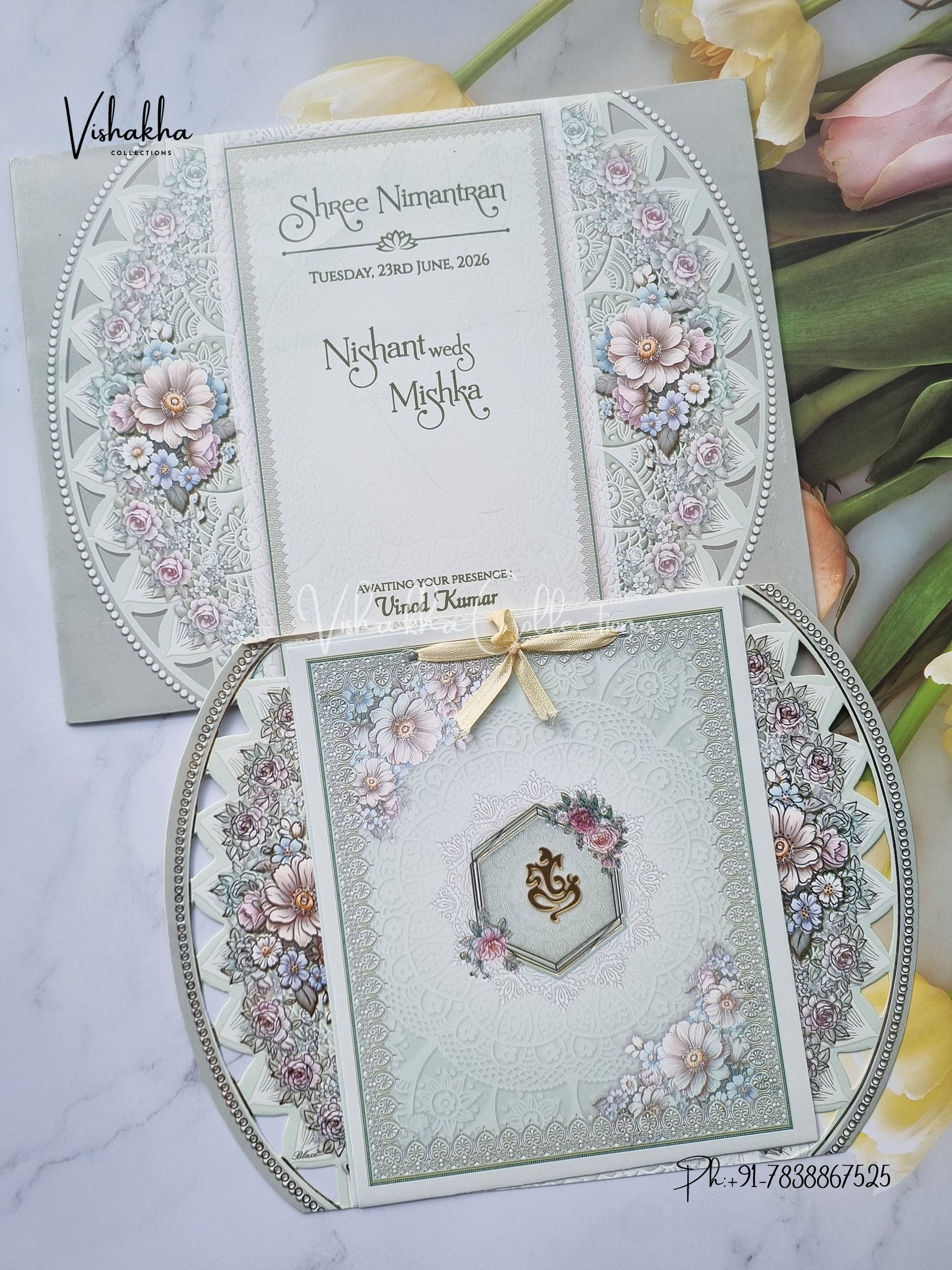 Flower Hindu Muslim Christian Sikh invitation Cards CR-8041