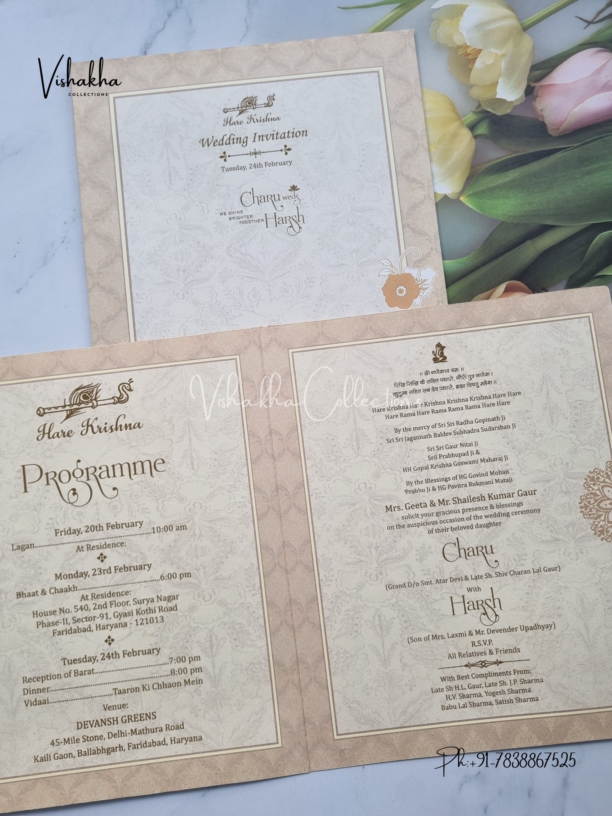 Vishakha Collections presents you beautiful luxury wedding invitation cards with all latest designs and the latest variety. Its just not a wedding invitation card but a beautiful feeling of love and relationship it carries for you. Beautifully printed and packed with a bundle of love. if you like it, dont think again, just go for it.If you are worrying about the quality of the product, send your doubts to us. We are here to help you. If you want in wholesale or bulk, dont forget to contact us.
