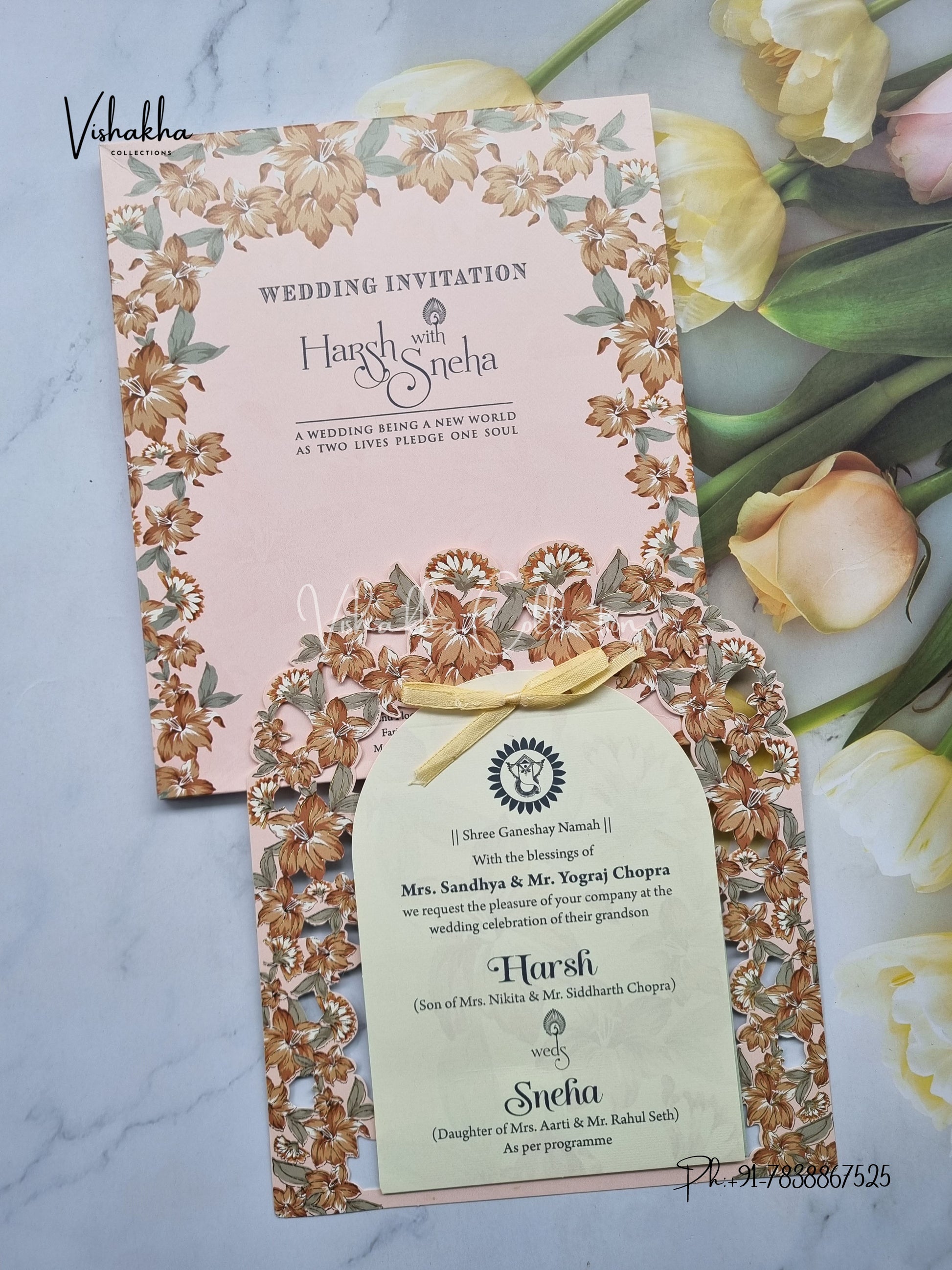 Flower Hindu Muslim Christian Sikh Laser Cut invitation Cards EJ-5192