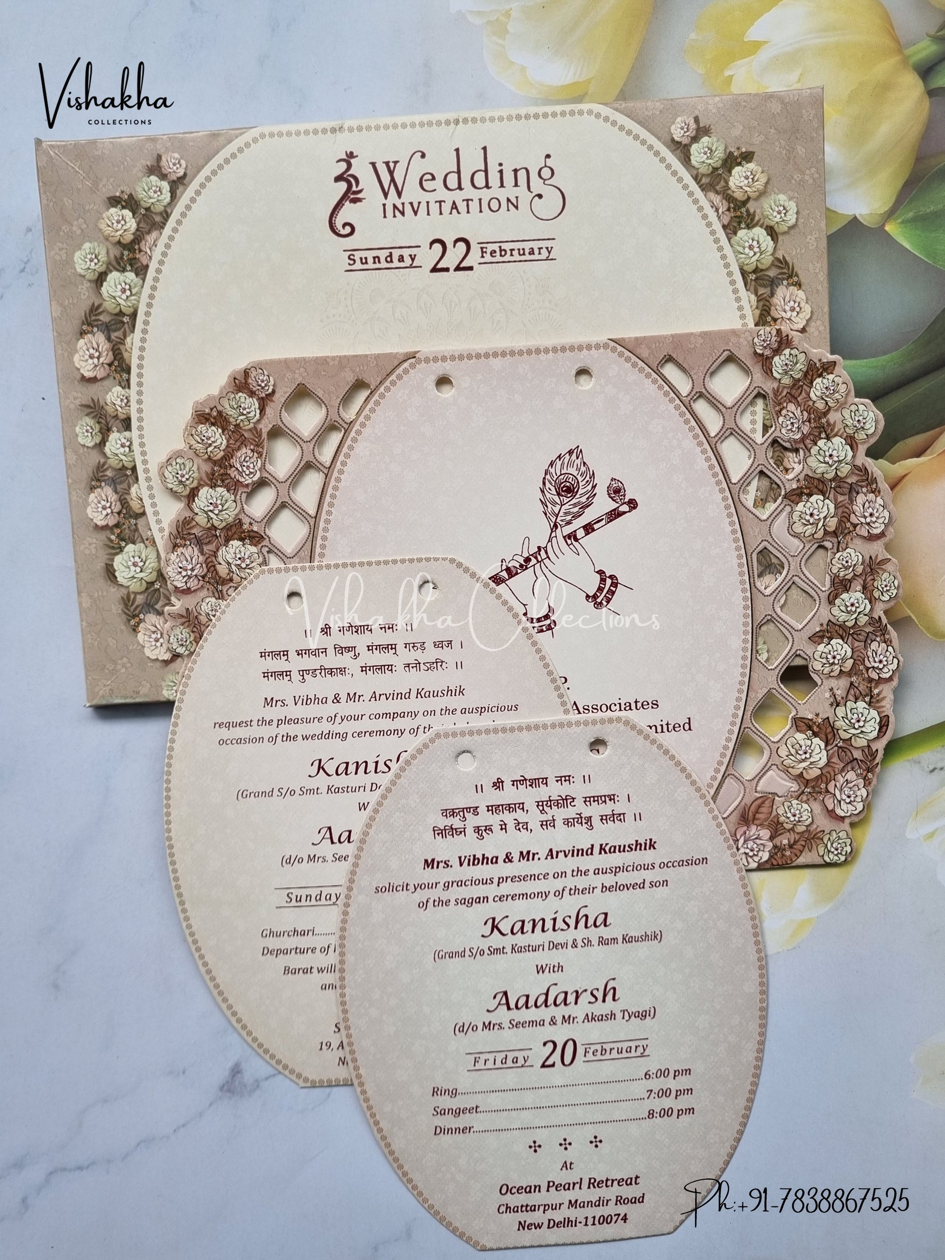 Flower Hindu Muslim Christian Sikh Laser Cut invitation Cards EJ-5278
