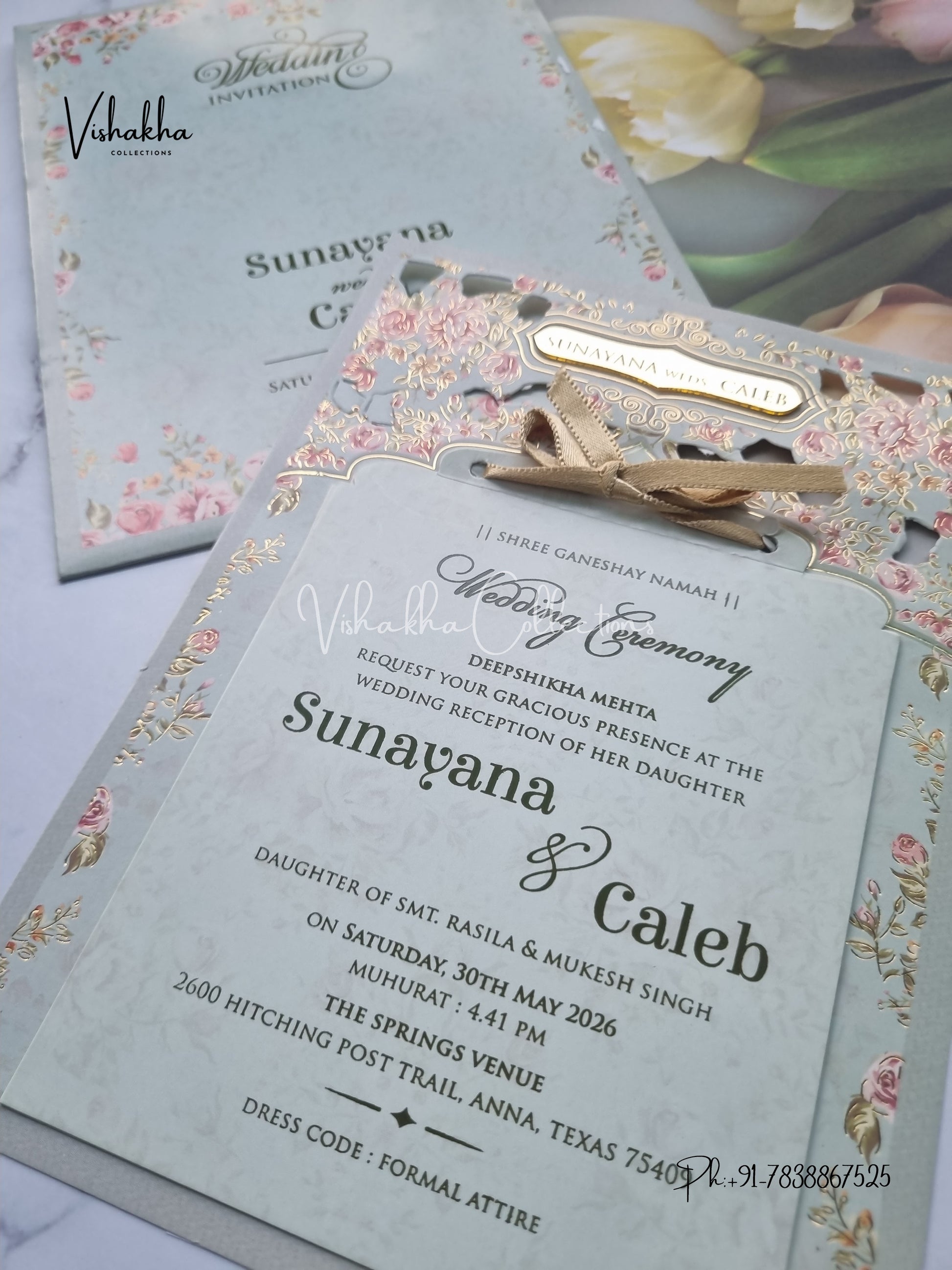 Flower Hindu Muslim Christian Sikh Laser Cut invitation Cards VN-669