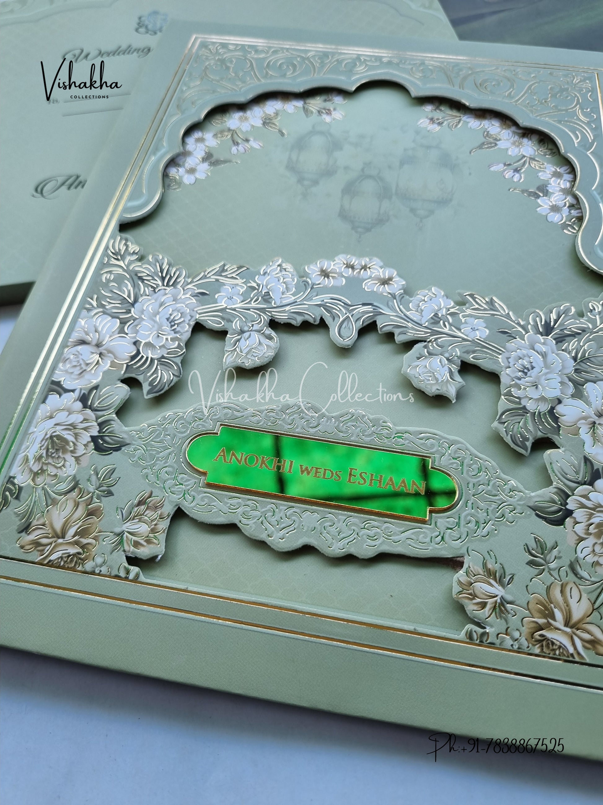 Vishakha Collections presents you beautiful luxury wedding invitation cards with all latest designs and the latest variety. Its just not a wedding invitation card but a beautiful feeling of love and relationship it carries for you. Beautifully printed and packed with a bundle of love. if you like it, dont think again, just go for it.If you are worrying about the quality of the product, send your doubts to us. We are here to help you. If you want in wholesale or bulk, dont forget to contact us.