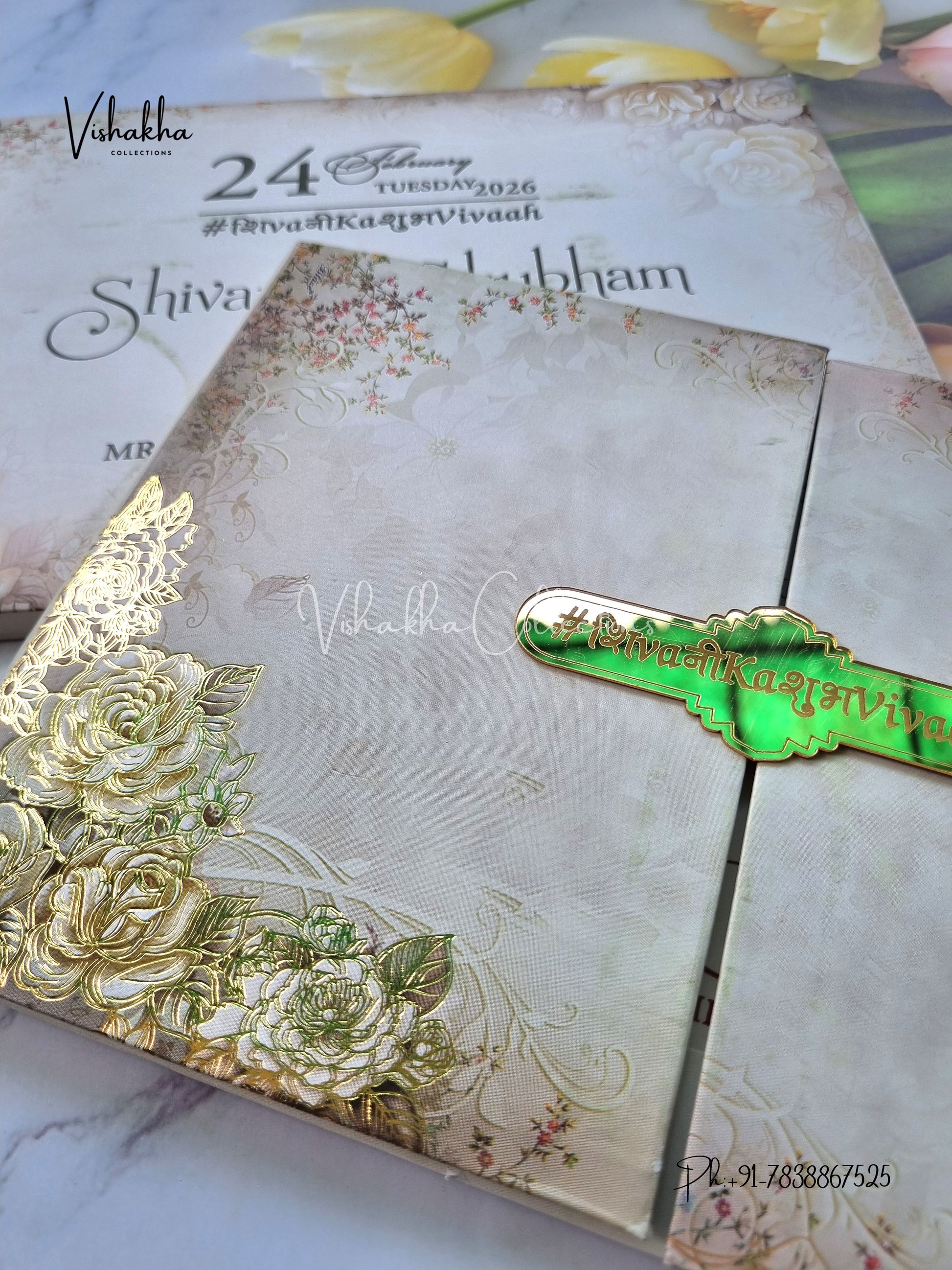 Vishakha Collections presents you beautiful luxury wedding invitation cards with all latest designs and the latest variety. Its just not a wedding invitation card but a beautiful feeling of love and relationship it carries for you. Beautifully printed and packed with a bundle of love. if you like it, dont think again, just go for it.If you are worrying about the quality of the product, send your doubts to us. We are here to help you. If you want in wholesale or bulk, dont forget to contact us.