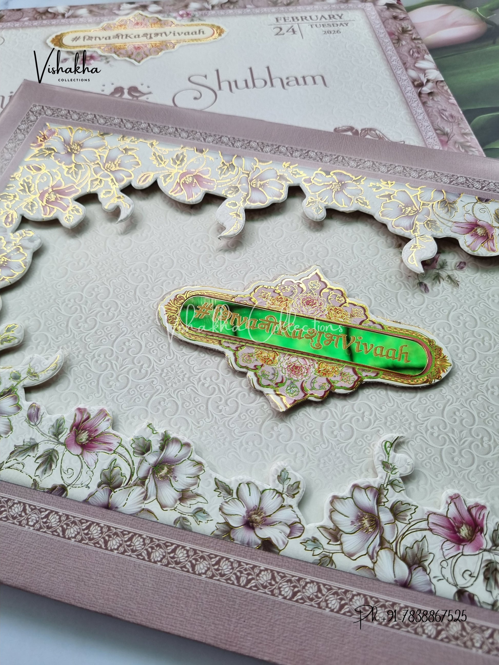 Vishakha Collections presents you beautiful luxury wedding invitation cards with all latest designs and the latest variety. Its just not a wedding invitation card but a beautiful feeling of love and relationship it carries for you. Beautifully printed and packed with a bundle of love. if you like it, dont think again, just go for it.If you are worrying about the quality of the product, send your doubts to us. We are here to help you. If you want in wholesale or bulk, dont forget to contact us.