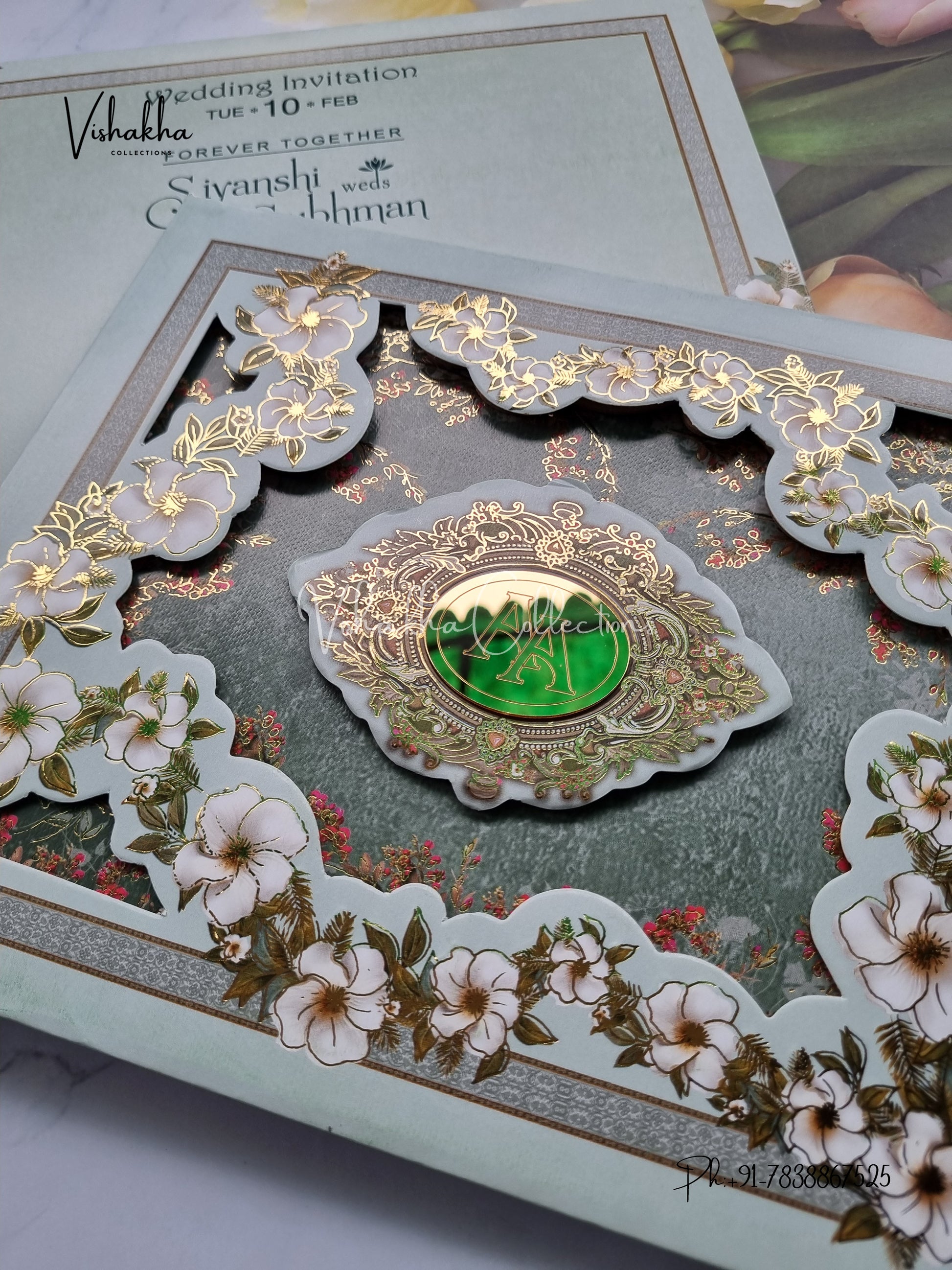 Flower Hindu Muslim Christian Sikh Padded invitation Cards EJ-5331