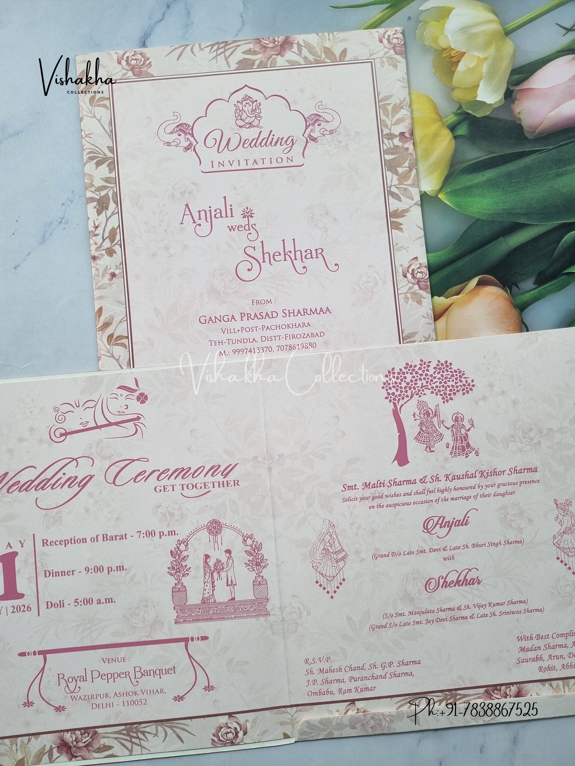 Vishakha Collections presents you beautiful luxury wedding invitation cards with all latest designs and the latest variety. Its just not a wedding invitation card but a beautiful feeling of love and relationship it carries for you. Beautifully printed and packed with a bundle of love. if you like it, dont think again, just go for it.If you are worrying about the quality of the product, send your doubts to us. We are here to help you. If you want in wholesale or bulk, dont forget to contact us.