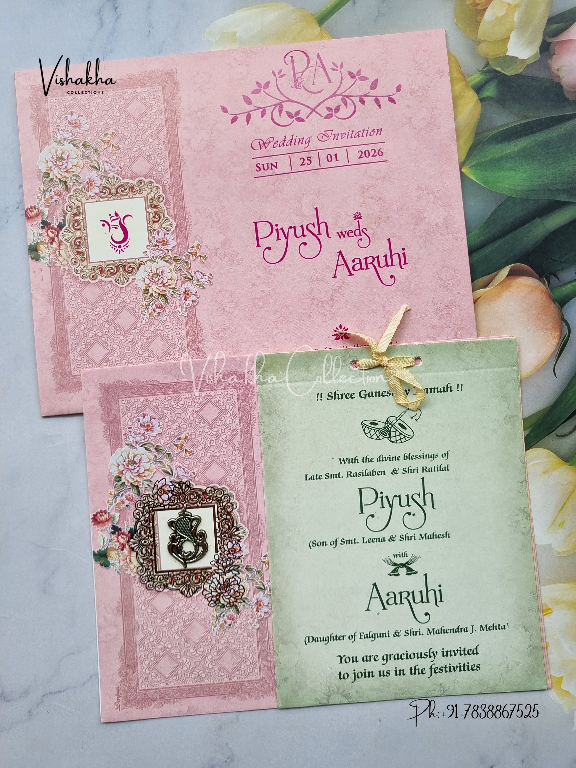 Flower Hindu Muslim Christian Sikh Pink Colored invitation Cards NA-1125-136