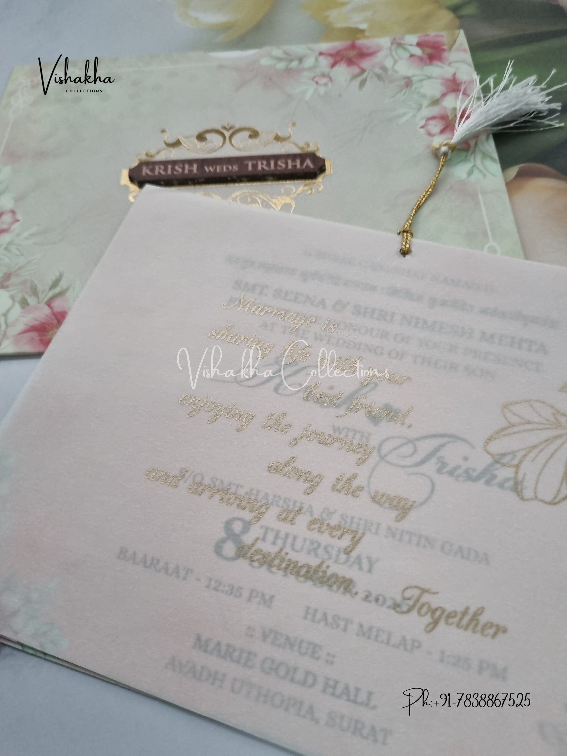 Flower Hindu Muslim Christian Sikh Vellum Paper invitation Cards VN-641
