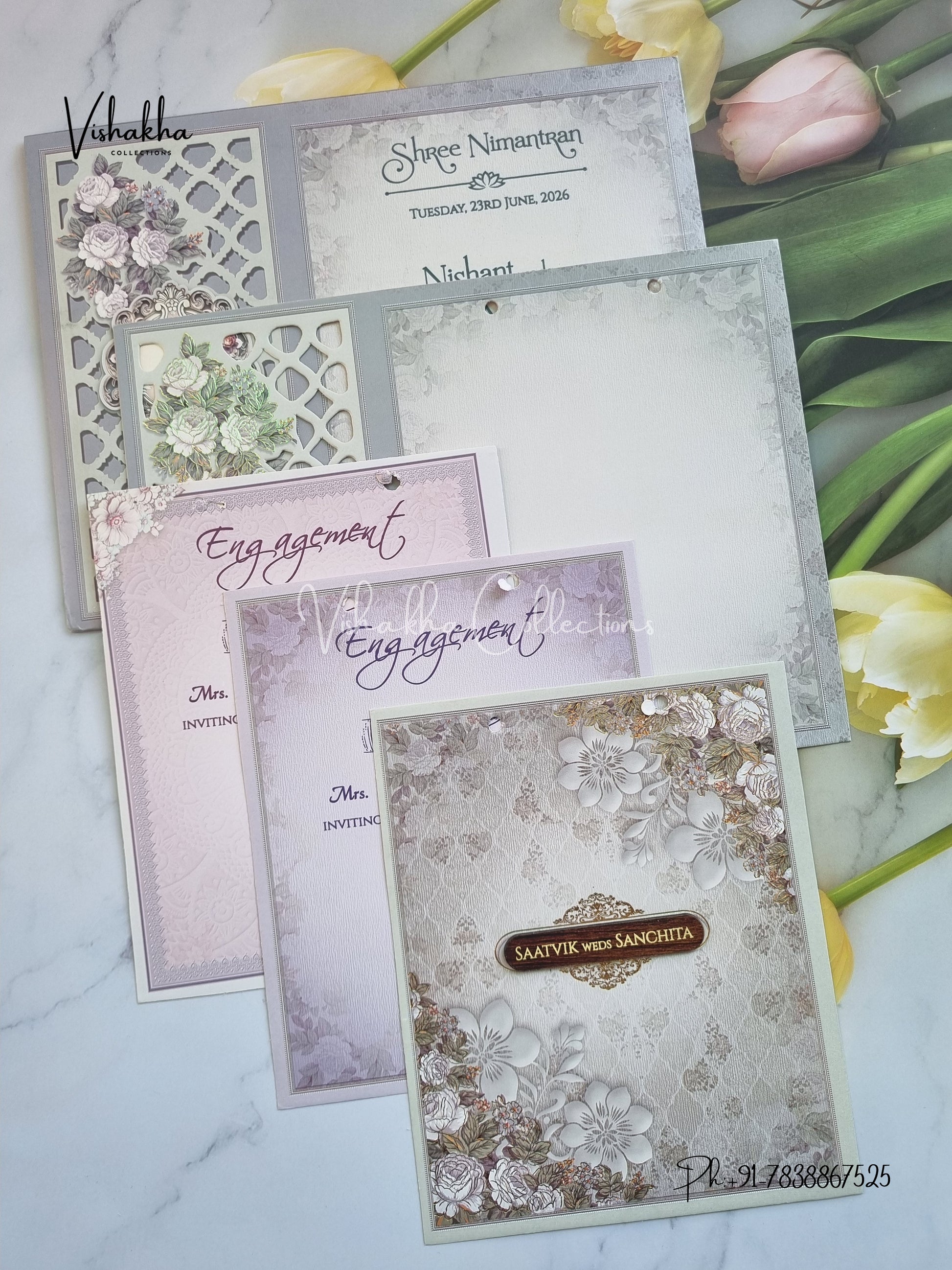 Vishakha Collections presents you beautiful luxury wedding invitation cards with all latest designs and the latest variety. Its just not a wedding invitation card but a beautiful feeling of love and relationship it carries for you. Beautifully printed and packed with a bundle of love. if you like it, dont think again, just go for it.If you are worrying about the quality of the product, send your doubts to us. We are here to help you. If you want in wholesale or bulk, dont forget to contact us.