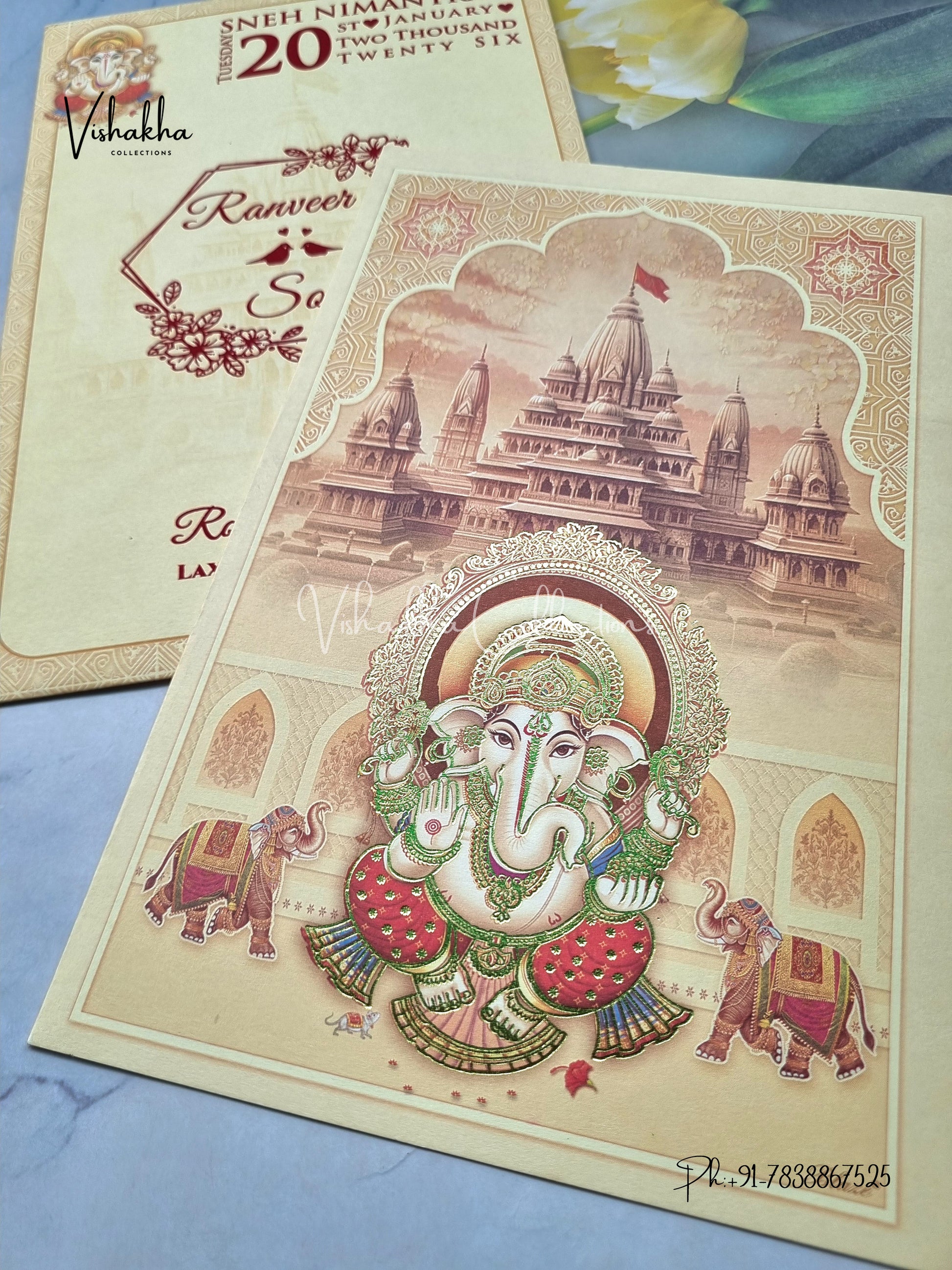 Vishakha Collections presents you beautiful luxury wedding invitation cards with all latest designs and the latest variety. Its just not a wedding invitation card but a beautiful feeling of love and relationship it carries for you. Beautifully printed and packed with a bundle of love. if you like it, dont think again, just go for it.If you are worrying about the quality of the product, send your doubts to us. We are here to help you. If you want in wholesale or bulk, dont forget to contact us.