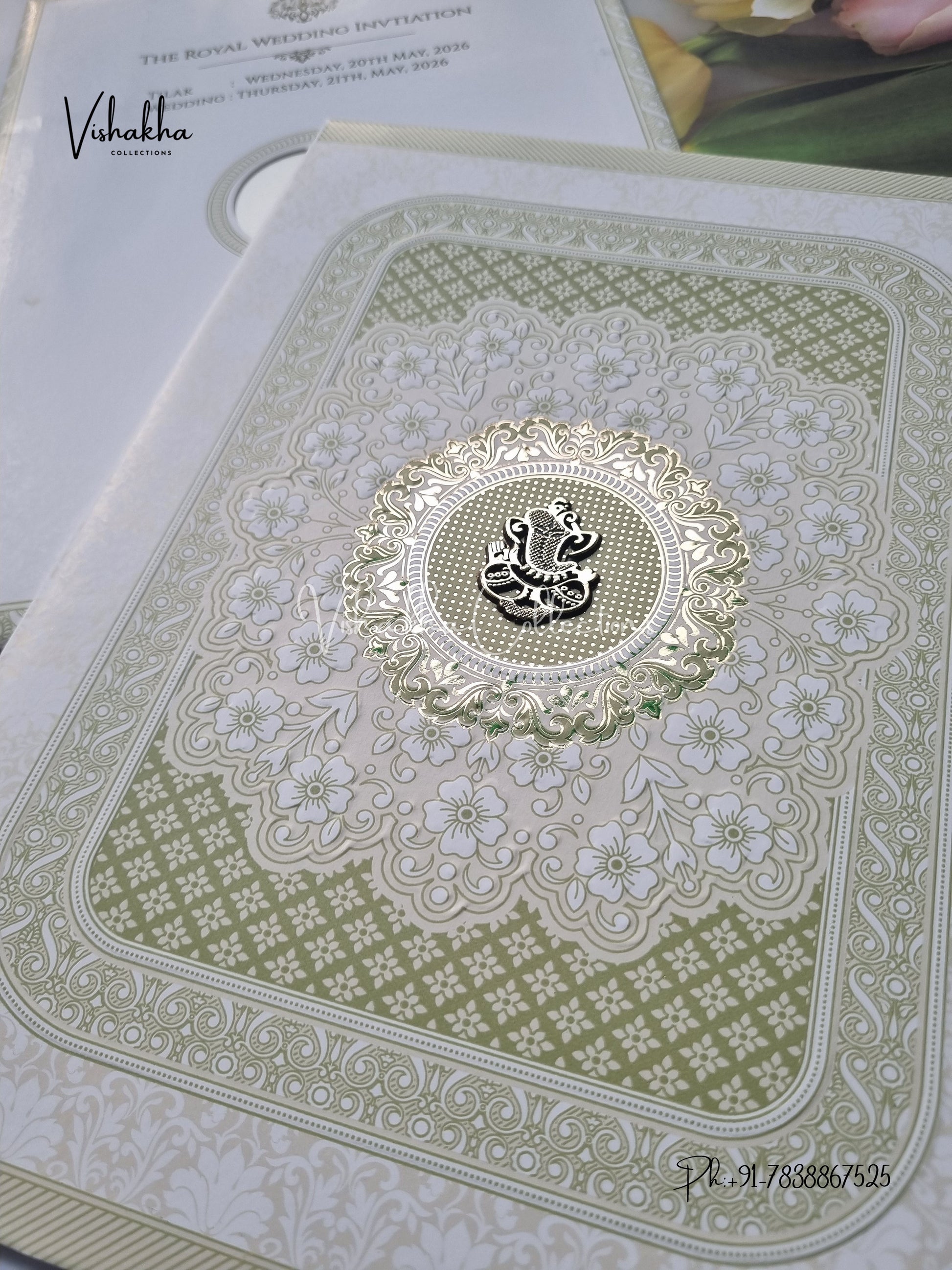 Vishakha Collections presents you beautiful luxury wedding invitation cards with all latest designs and the latest variety. Its just not a wedding invitation card but a beautiful feeling of love and relationship it carries for you. Beautifully printed and packed with a bundle of love. if you like it, dont think again, just go for it.If you are worrying about the quality of the product, send your doubts to us. We are here to help you. If you want in wholesale or bulk, dont forget to contact us.