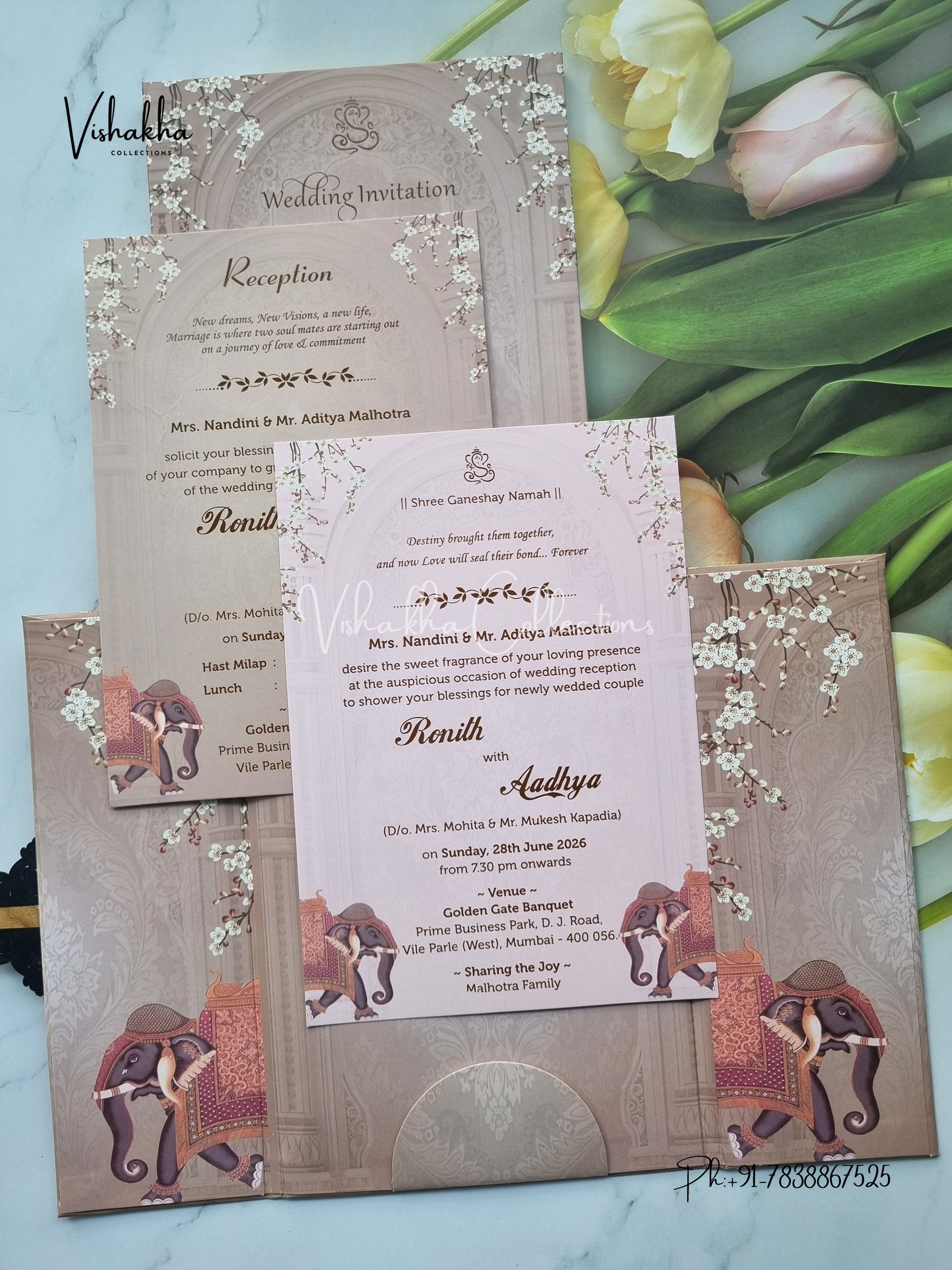 Hathi Double Door Hindu Sikh Padded invitation Cards VN-705