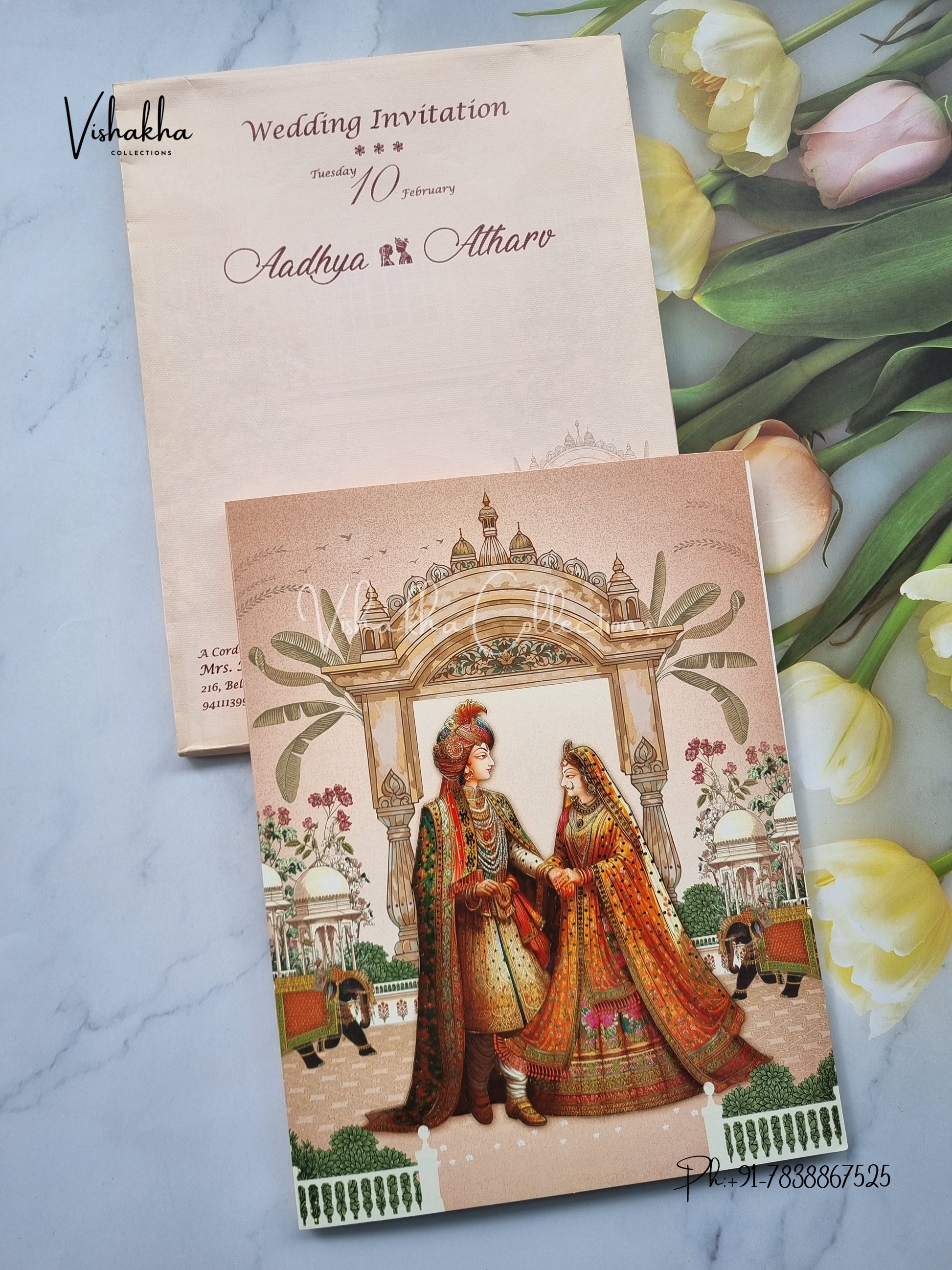 Vishakha Collections presents you beautiful luxury wedding invitation cards with all latest designs and the latest variety. Its just not a wedding invitation card but a beautiful feeling of love and relationship it carries for you. Beautifully printed and packed with a bundle of love. if you like it, dont think again, just go for it.If you are worrying about the quality of the product, send your doubts to us. We are here to help you. If you want in wholesale or bulk, dont forget to contact us.
