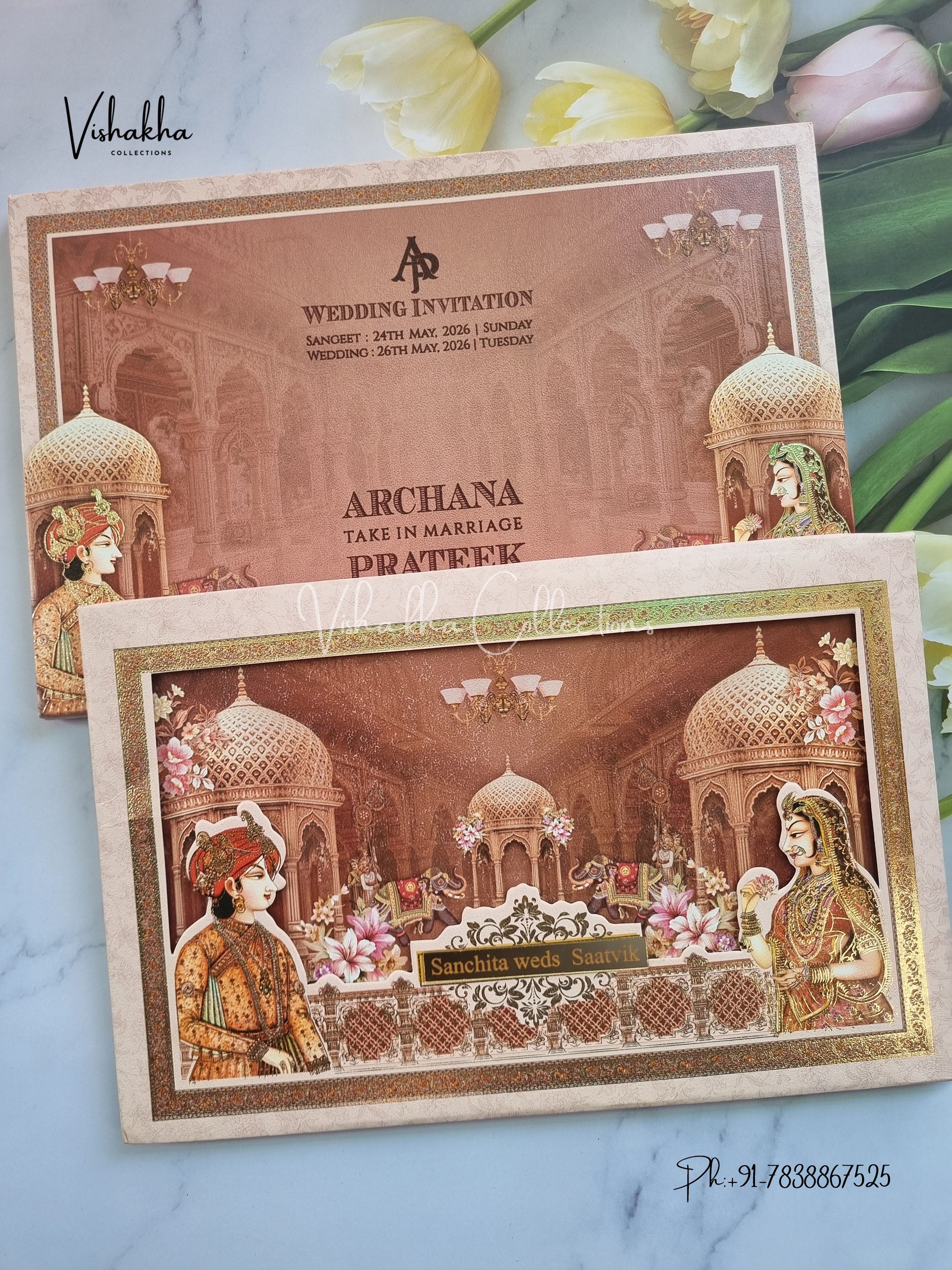 Vishakha Collections presents you beautiful luxury wedding invitation cards with all latest designs and the latest variety. Its just not a wedding invitation card but a beautiful feeling of love and relationship it carries for you. Beautifully printed and packed with a bundle of love. if you like it, dont think again, just go for it.If you are worrying about the quality of the product, send your doubts to us. We are here to help you. If you want in wholesale or bulk, dont forget to contact us.