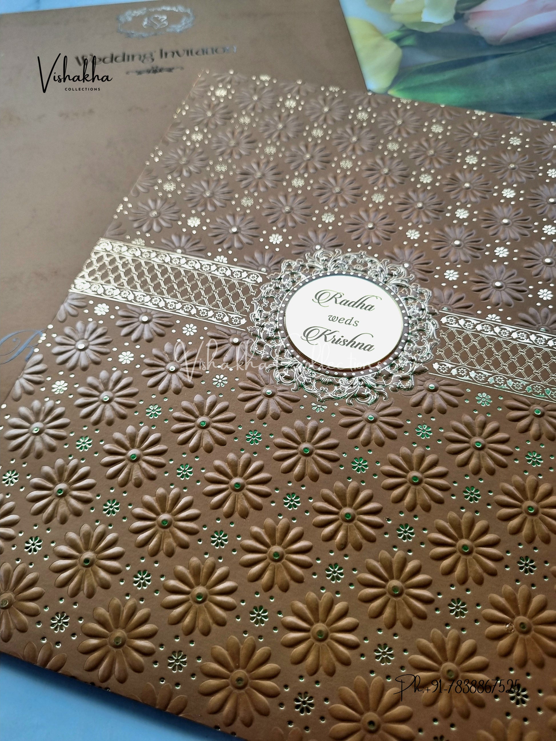Vishakha Collections presents you beautiful luxury wedding invitation cards with all latest designs and the latest variety. Its just not a wedding invitation card but a beautiful feeling of love and relationship it carries for you. Beautifully printed and packed with a bundle of love. if you like it, dont think again, just go for it.If you are worrying about the quality of the product, send your doubts to us. We are here to help you. If you want in wholesale or bulk, dont forget to contact us.