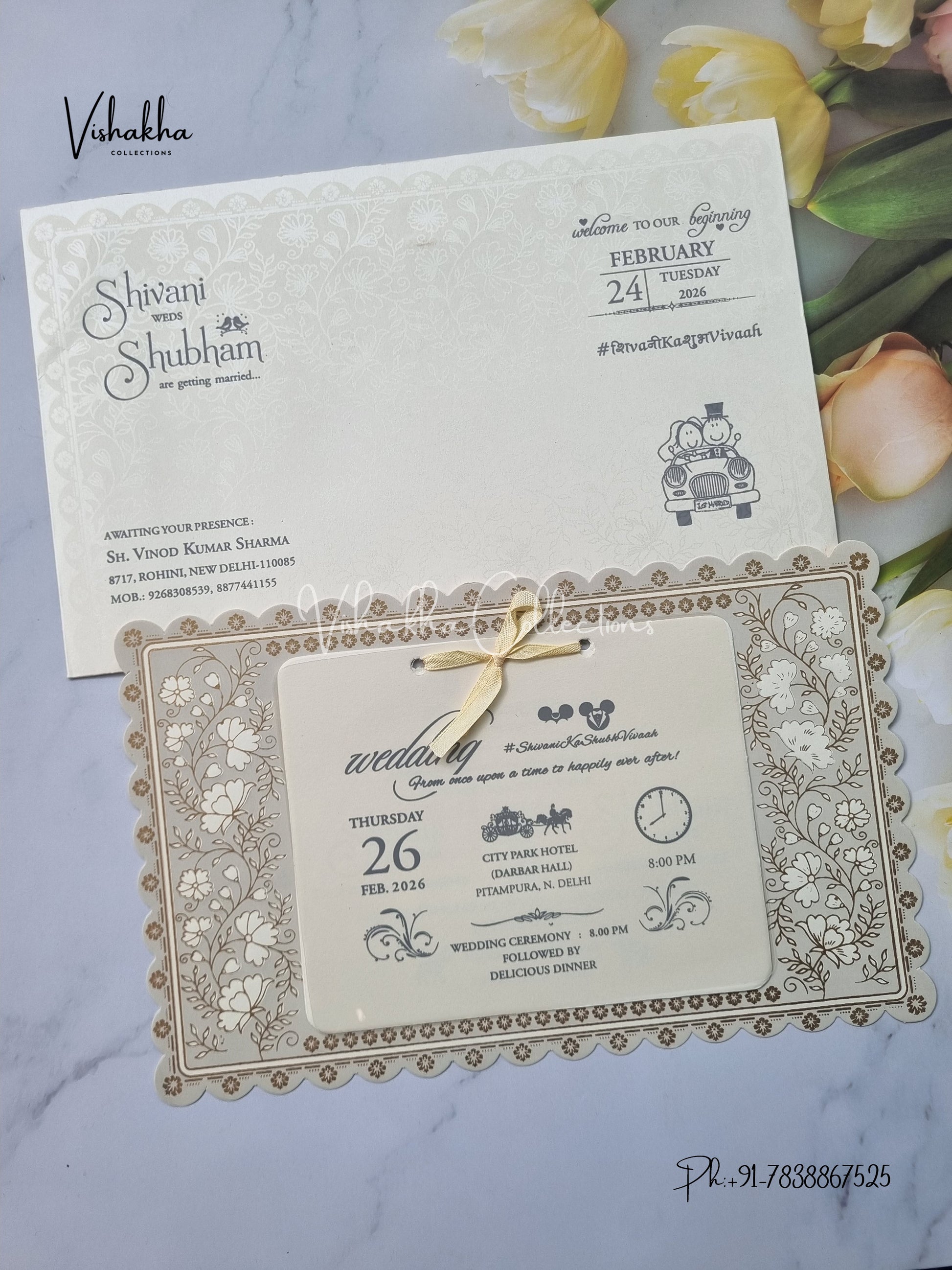 Vishakha Collections presents you beautiful luxury wedding invitation cards with all latest designs and the latest variety. Its just not a wedding invitation card but a beautiful feeling of love and relationship it carries for you. Beautifully printed and packed with a bundle of love. if you like it, dont think again, just go for it.If you are worrying about the quality of the product, send your doubts to us. We are here to help you. If you want in wholesale or bulk, dont forget to contact us.